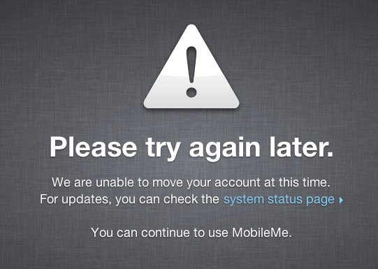 I realise that the servers are stressed, but it's hardly a glowing inditement of the new iCloud servers if they can't handle this stress.
