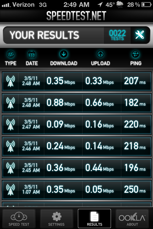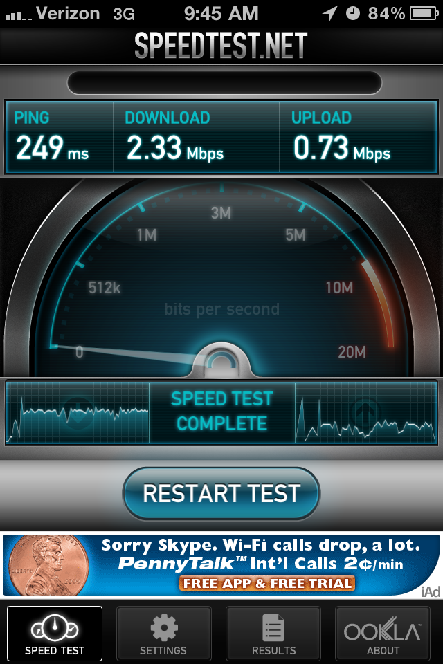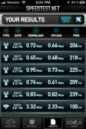 I've never come close to these kinds of speeds. I was averaging .30 - .50 Mbps kinds of speeds. Anything above .50 is an eye brow raiser.