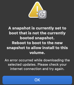 “A snapshot is currently set to boot that is not the currently booted snapshot.