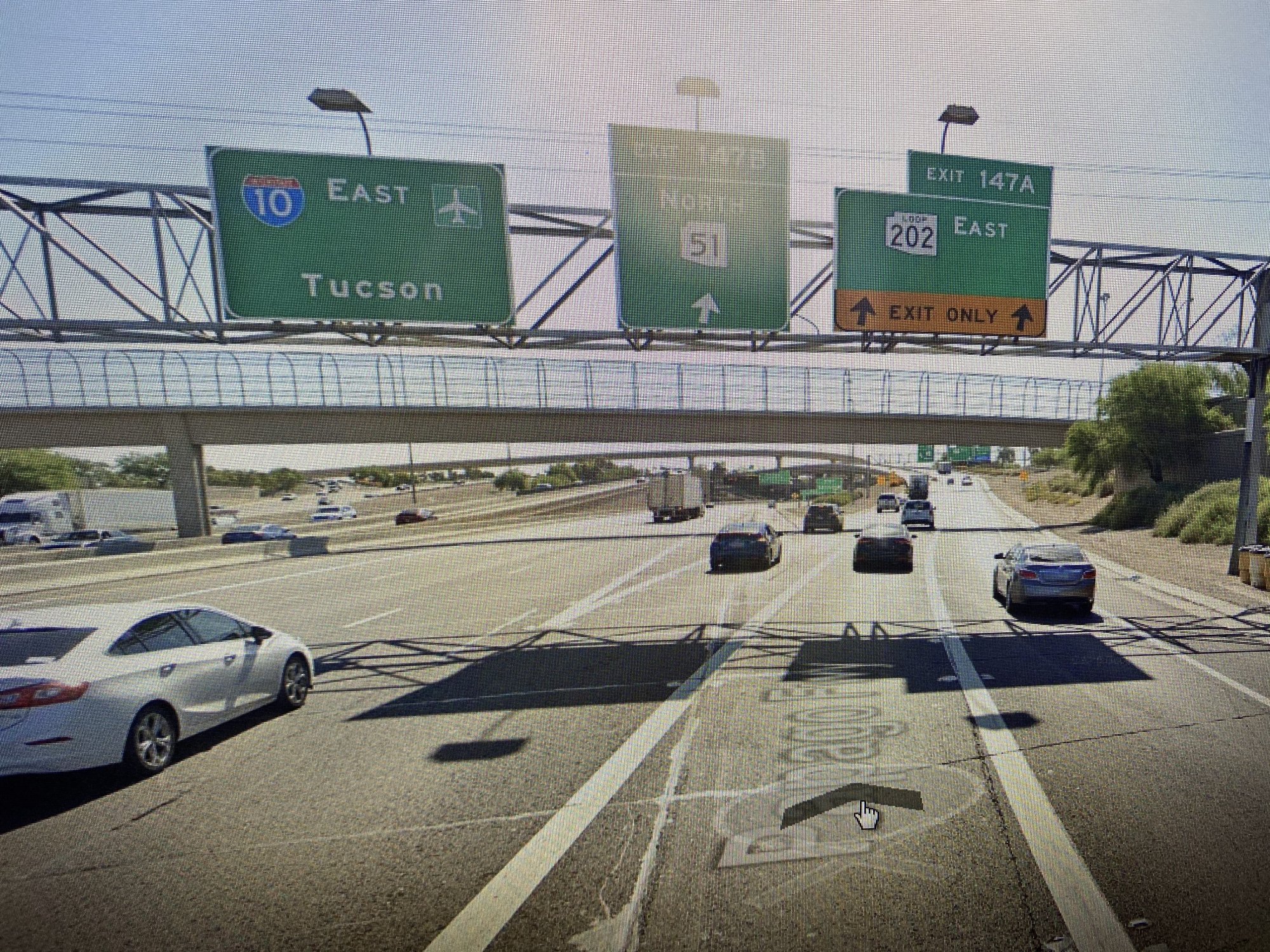 Notice how the interchange is drawn. Once you leave I-10 onto the exit ramp towards State Route 202, notice how the road is drawn thick yellow, like the rest of the highways? Apple Maps is treating this road as part of Route 202 itself, rather than as an exit ramp. And because of this distinction, the directions ignore the exit ramp split for Exits 147A and 147B, because it believes you're already on the main highway it expects you to be on. I'm experiencing this problem a TON in New York City. I've reported this at least a dozen times at various locations, but none of have fixed yet.