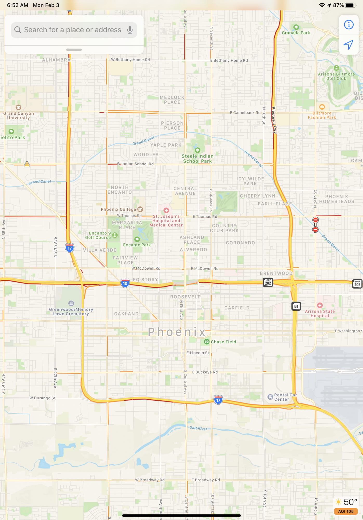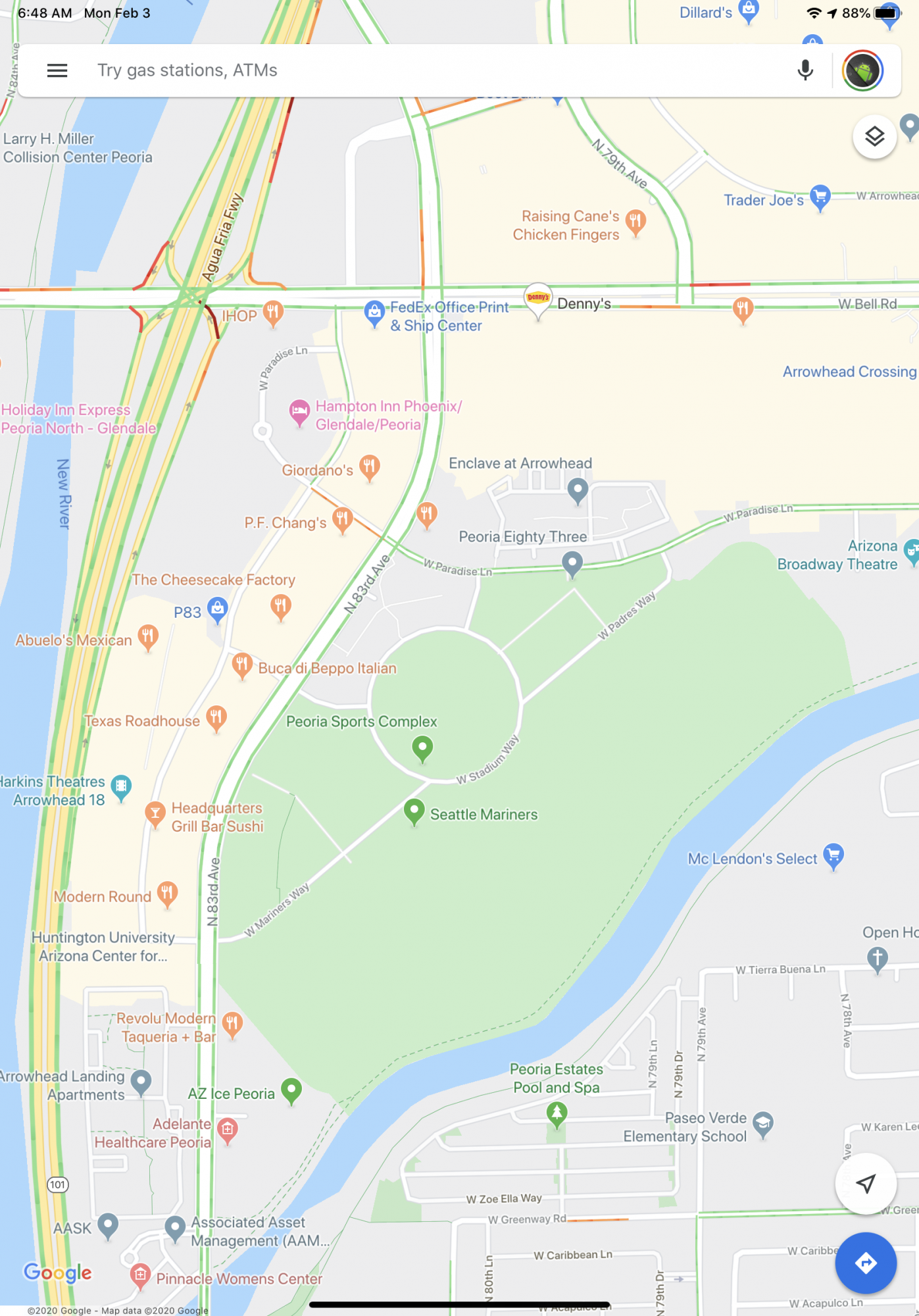 Peoria Sport Complex in Peoria Arizona. I like the detail Apple applied to the map. I prefer the traffic information from Google.