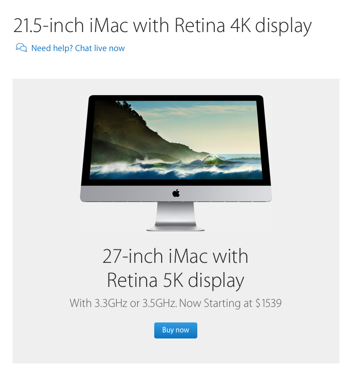 Faster and more powerful than ever, the new 27-inch iMac with Retina 5K display now comes with sixth-generation Intel Core processors and the latest AMD high-performance graphics that deliver up to 3.7 teraflops of compute power. The new 21.5-inch iMac with Retina 4K display features a fifth-generation Intel Core processor and enhanced Intel Iris Pro Graphics. Two Thunderbolt 2 ports now come standard on all iMacs and deliver up to 20Gbps data transfer speeds for external drives and high-performance peripherals. And three stream 802.11ac Wi-Fi allows iMac to support up to 1.3Gbps wireless networking.*
