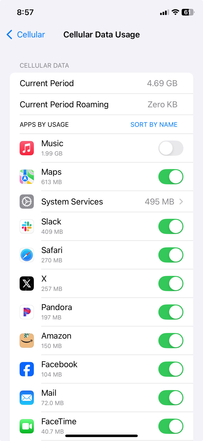 We have been having issues with our phones downloading a lot via cellular data. Before about 4 months ago, I would use 3-4GB/month and my wife would use about 1GB/month. This was good, because our plan allows for 4GB/month for each phone (metered separately). But suddenly we were both regularly going over the limit, sometimes several times in one month (after a phone hits 4GB, they charge us $10 and add 2GB). Because of this, at the beginning of our bill cycle (9 days ago) I reset both of the cellular data counters on our phones to see what was using up a lot of data.