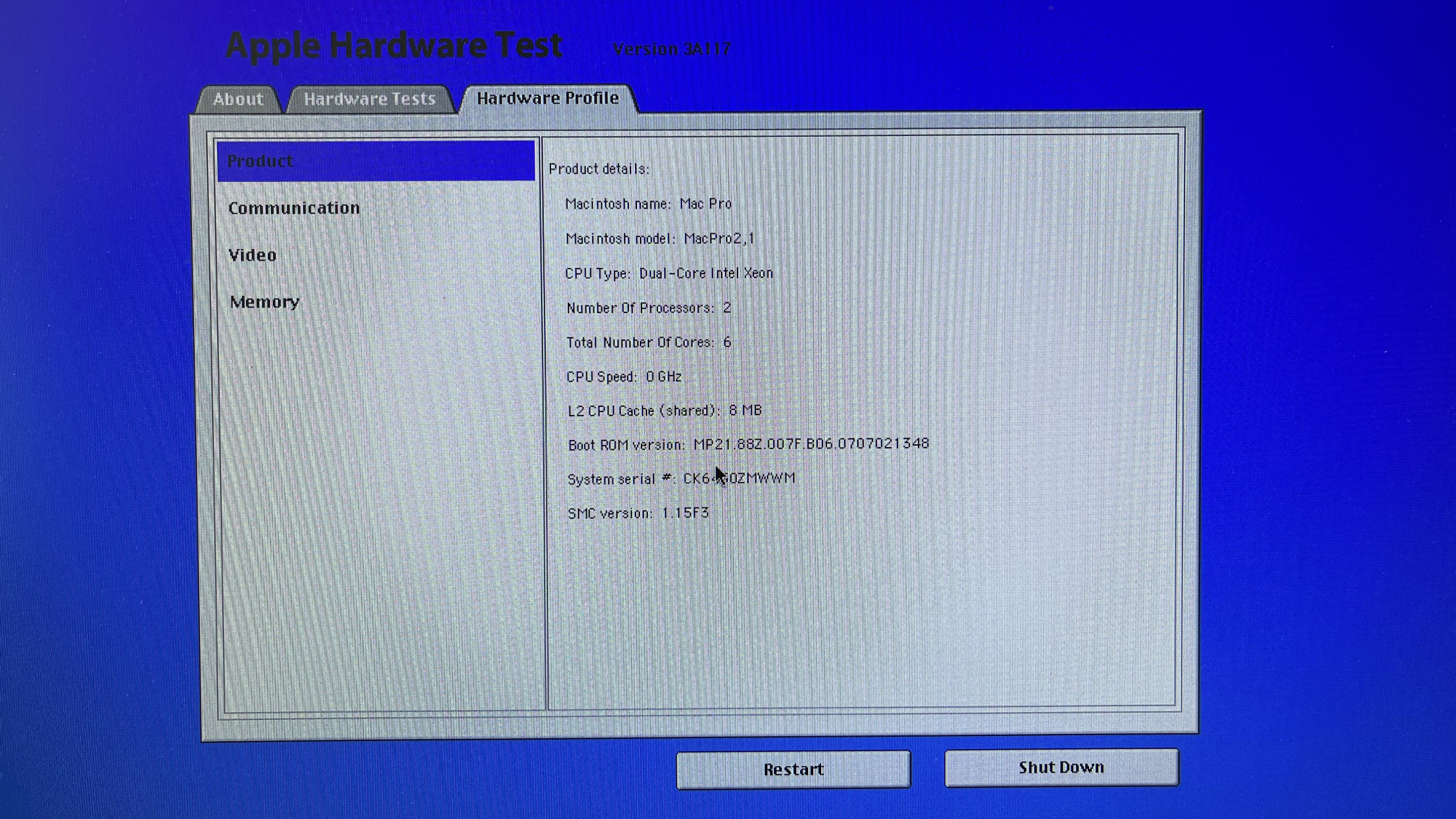 This is the experiment I have been wanting to do for a long time, but have been too lazy to try it out myself. Yes, it shows that the Mac Pro 1,1 will work with a Harpertown 5400 series processor once it has booted. Our problem must thus be in the firmware, not the hardware.