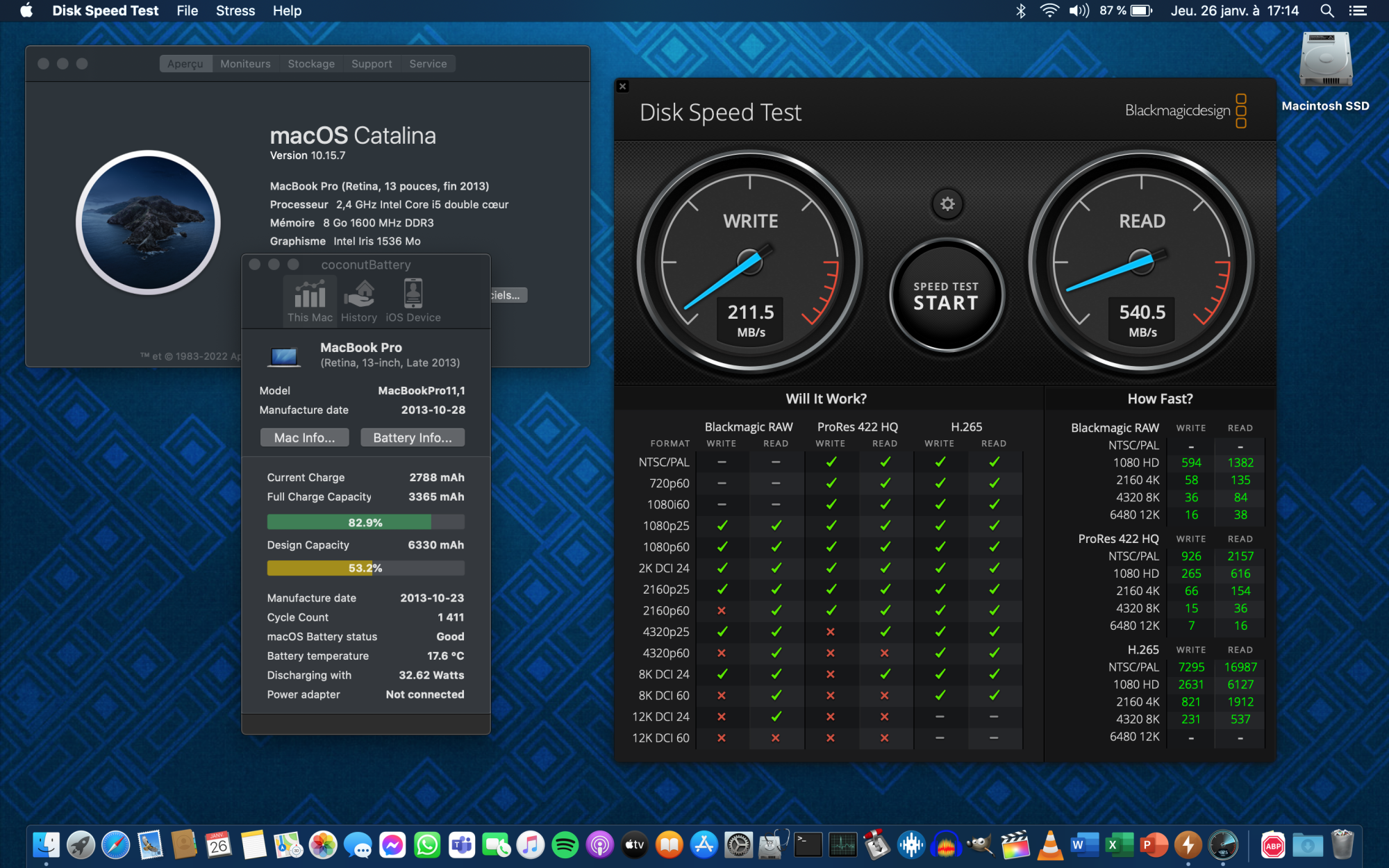 Sure, the actual SSD is slow (see screenshot) but is that really why macOS is sluggish ? Maybe the poor entry level i5 is struggling to keep up