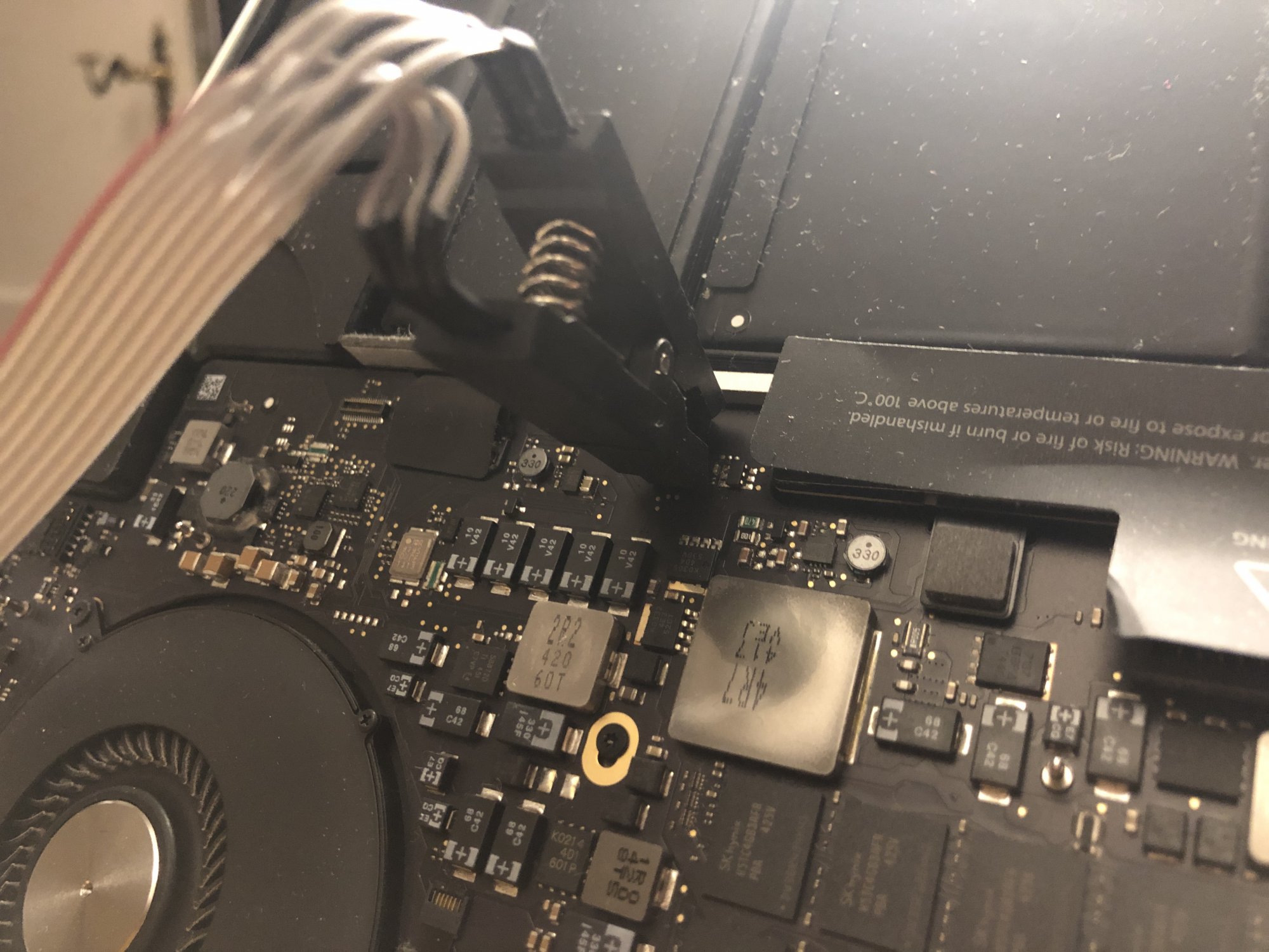 The other reason for buying the J6100 which is only a Hirose DF40 connector is because on the Macbook Airs the EFI/BIOS is on the reverse of the board, meaning you have to take the board out. This can be painful for those that can't do it in less than 5 mins. For me I use the J6100 connector all of the time but yet I have like 20 macbooks looking back at me currently and another 6 on the bench, lol.Since my J6100 Adapter was broken, I didn't want to spend another 50 Euros for a new one. I just bought a SOIC-Test-Clip for 5 Euros and successfully patched my 159.0.0.0.0, which was upgraded with 10.15.4 update even without original SSD.