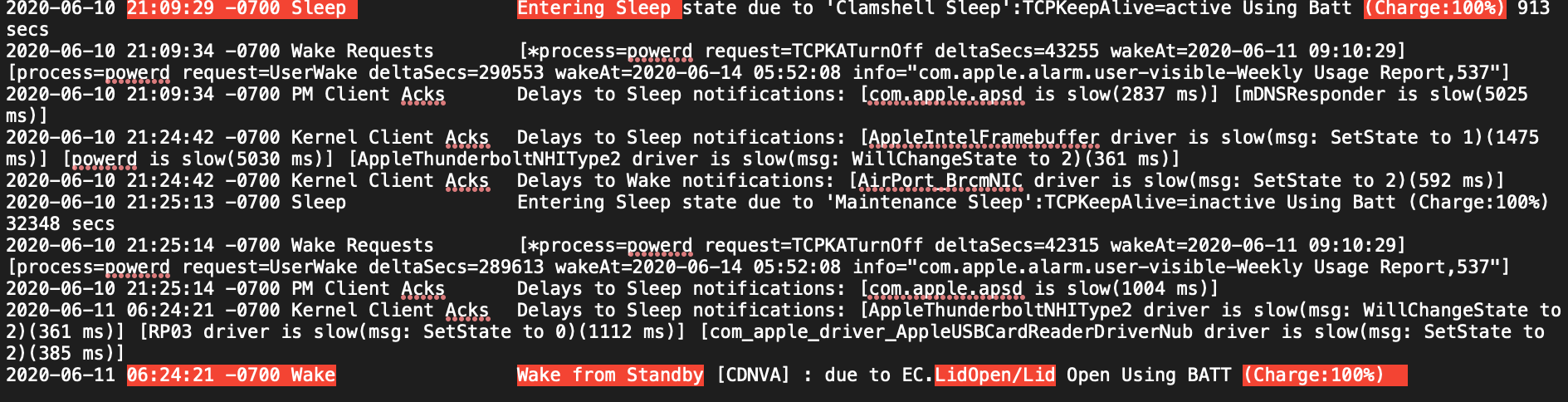 3 sleep wake errors in the last 3 days. Usually after letting it sit overnight. 2014 model, hibernate mode 3, tcpkeepalive 0, everything else as it was standard. Looks like a full shutdown is the go every night. A shame Apple hasn't done anything to help us all out with this. Also a shame the Apple SSUBX drives are so expensive. I'd just go a 512Gb if it was worth it. Would still get the extra 2 links on my laptop, so performance would get an increase.
