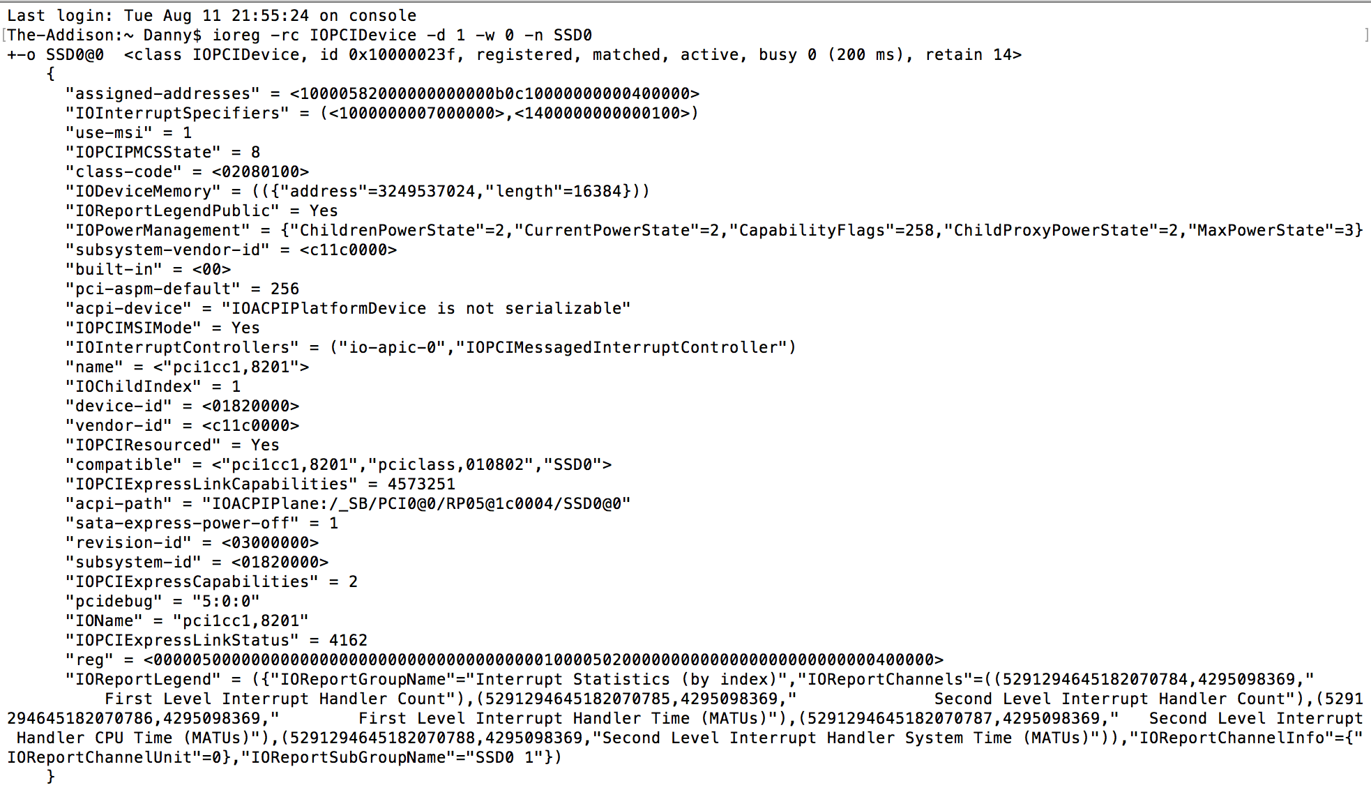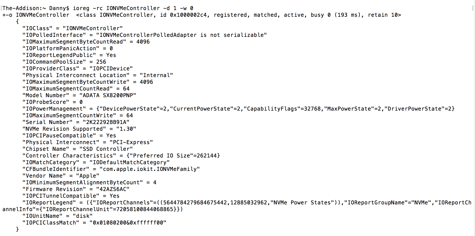 It will print out if there is any reference in the kernel log related to the AppleNVMe kext. On my Mac it will say assert failed. But on yours it should either print out nothing or give some clues to why your ssd controller seem to be working differently.