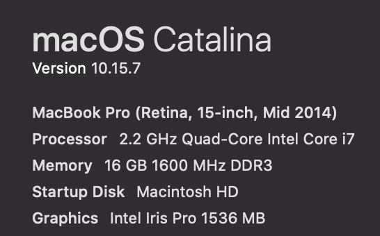 Hello everyone. I recently bought a MacBook Pro 15" Late 2013 2GHz. I'm running the latest version of Catalina 10.15.7