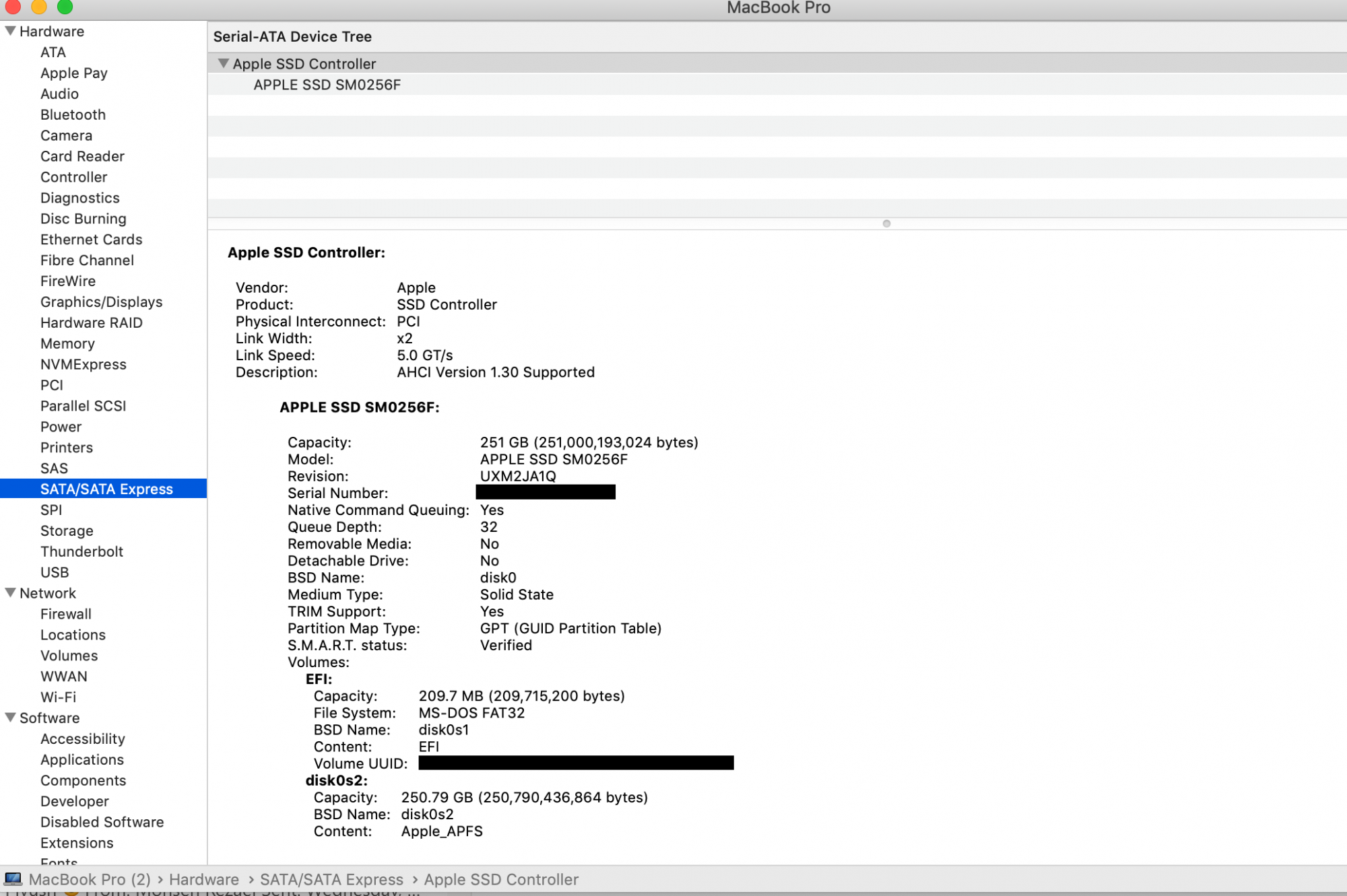And so, all sources say (including Apple), this should have a SSD on a PCIe interface. I am a bit confused with my ASR information - which shows the SSD on the SATA Device tree vs. the PCI one... is it simply because Apple used a SATA m.2 for the SSD on the PCI hardware interface and that's confusing me ?(or) did I get some sort of Frankenstein laptop ?
