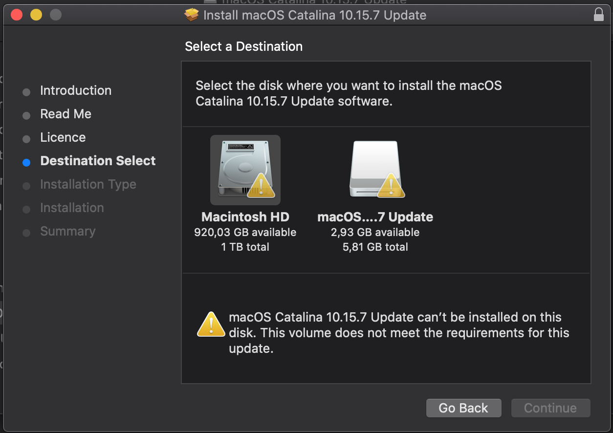 I'm on Catalina 10.15.6 and I'm not even able to update to 10.15.7. First I thought this was due to issues Apple is having with the Big Sur rollout, but then I tried to install from the combo update package and got an incompatibility error: