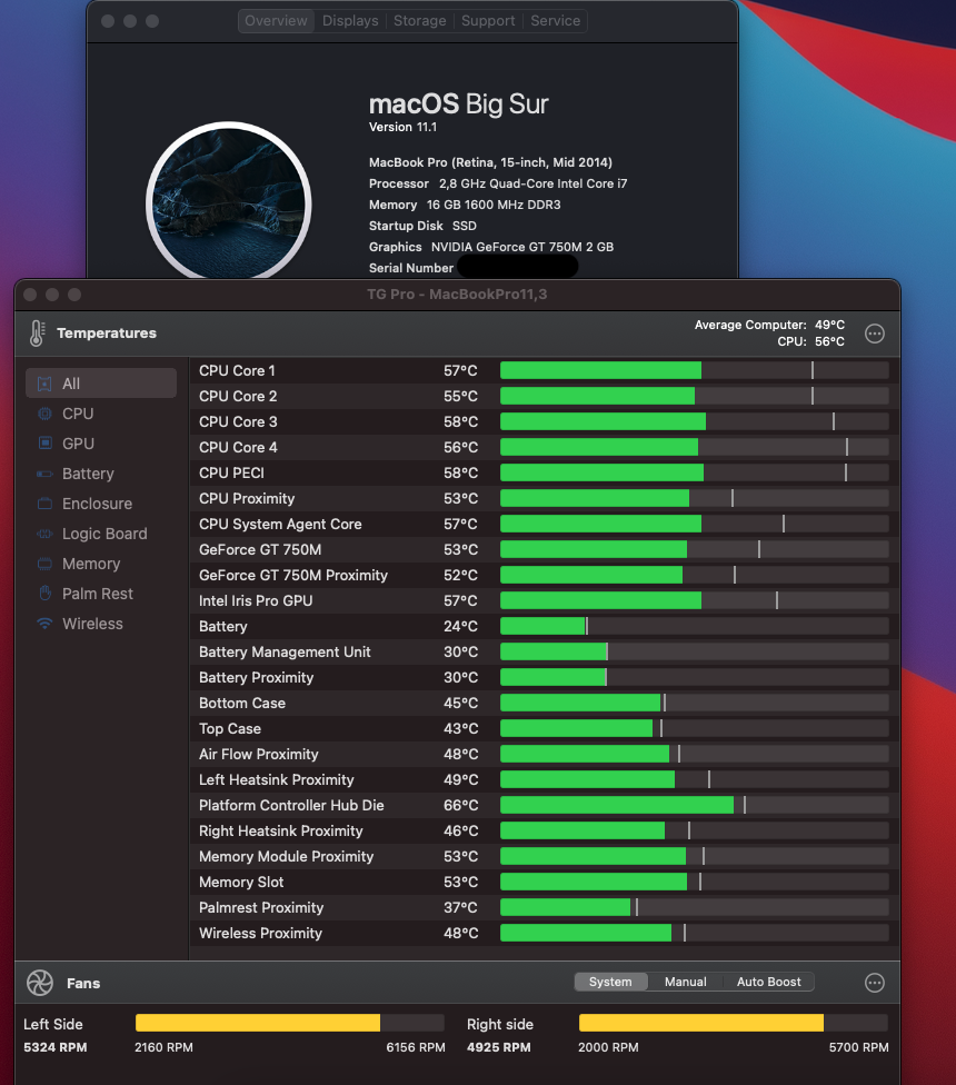 I just upgraded my MBPR 15" 2014 to Sabrent NVME w/ Sintech adapter but I'm having troubles with the fans, on light use they just spin much higher than before.