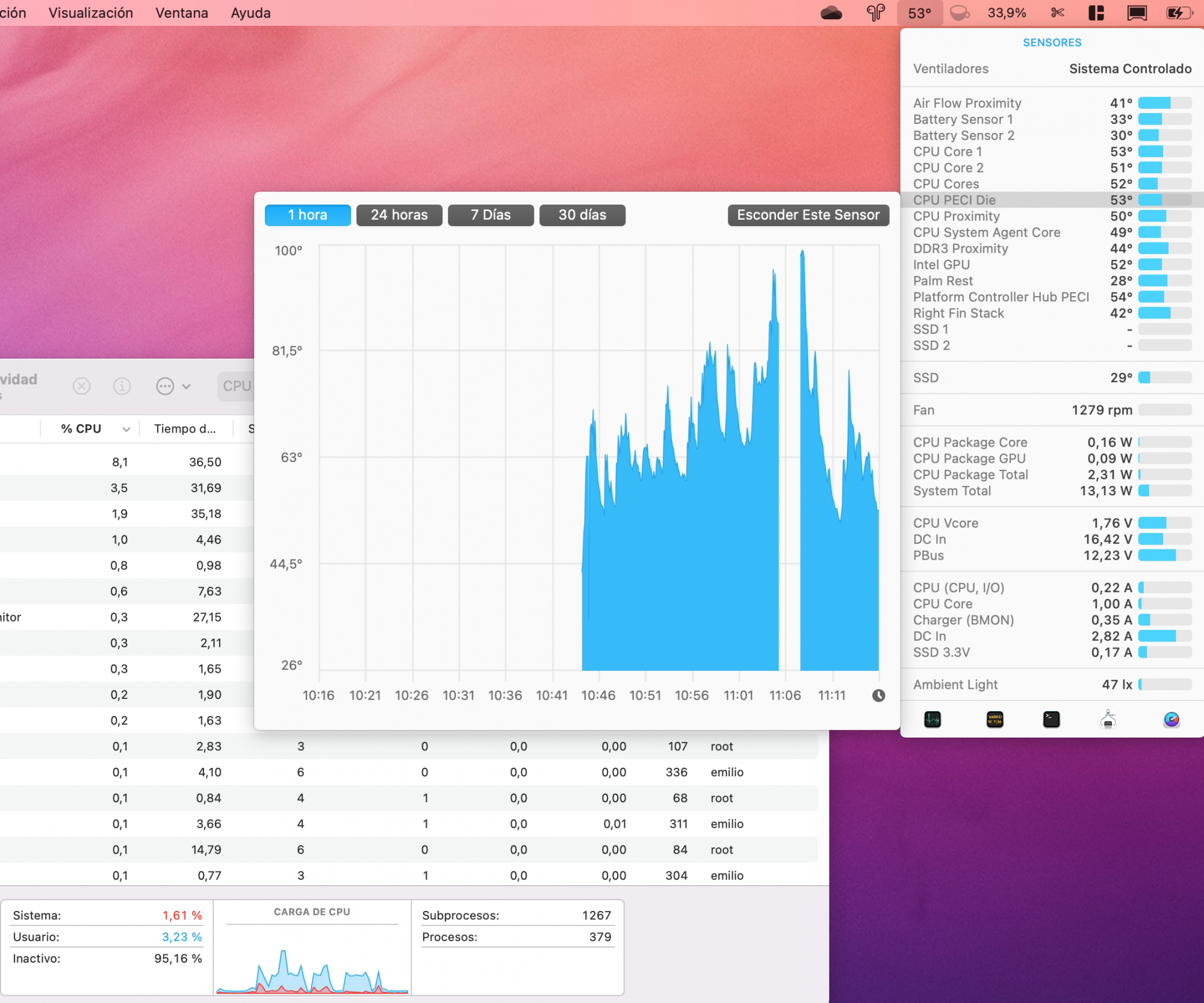 I never checked my temps before but now the fans would spin up sooner on opened just a mail, safari browser with 3-5 tabs and whatsapp desktop. In activity monitor idle cpu is 95-85% most of the time.