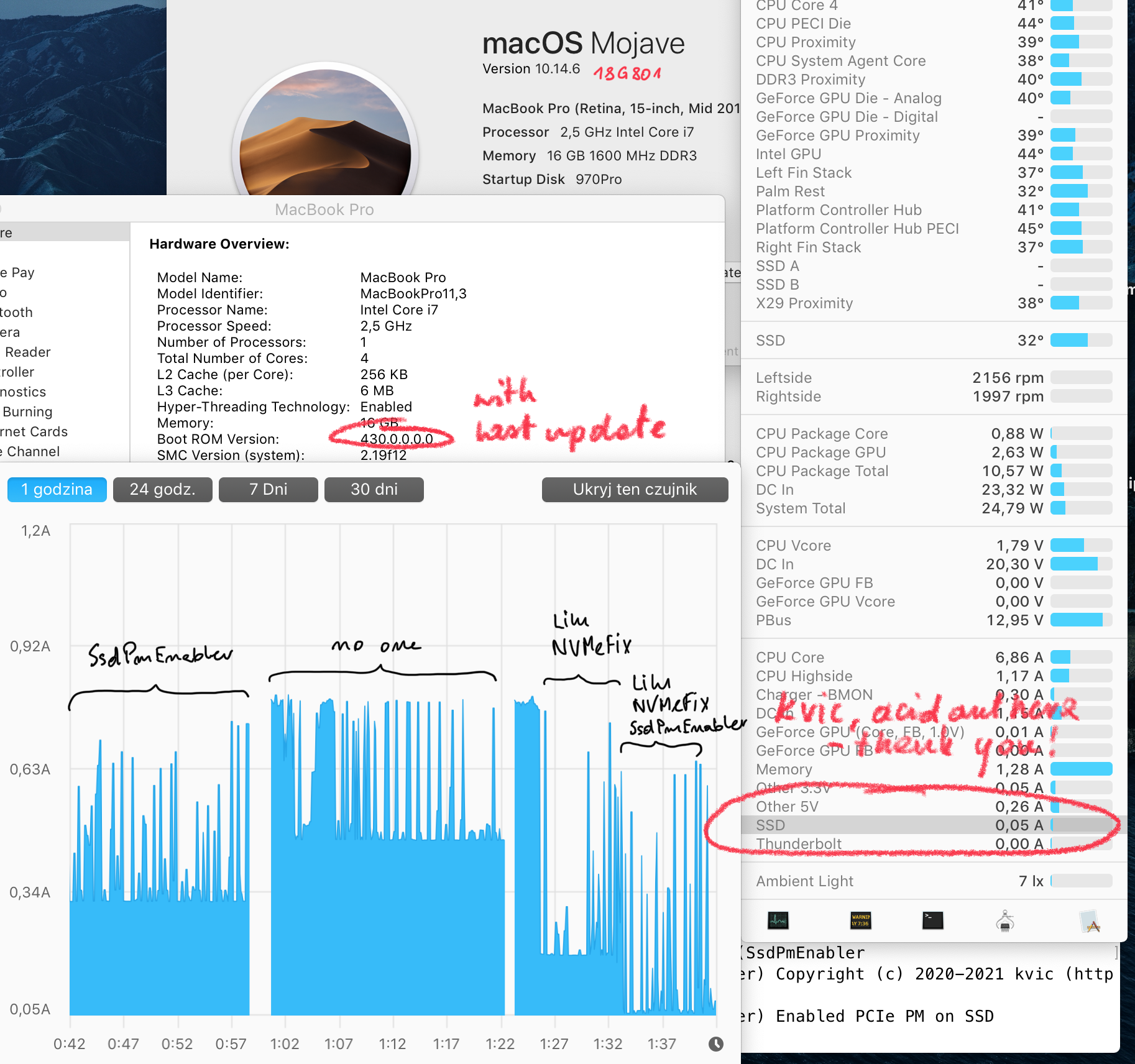 The behavior of my MBP with the SX8200 Pro is the same as @fiftystorm’s attached graph. However, I see the same power draw behavior in none/SsdPmEnabler/NVMeFix/SsdPmEnabler+NVMeFix regardless of power source.