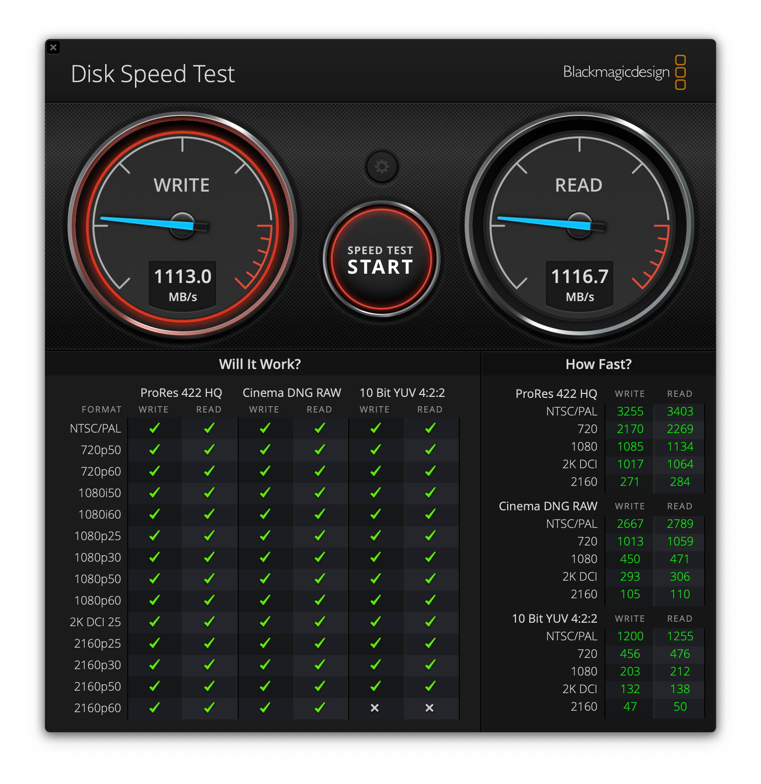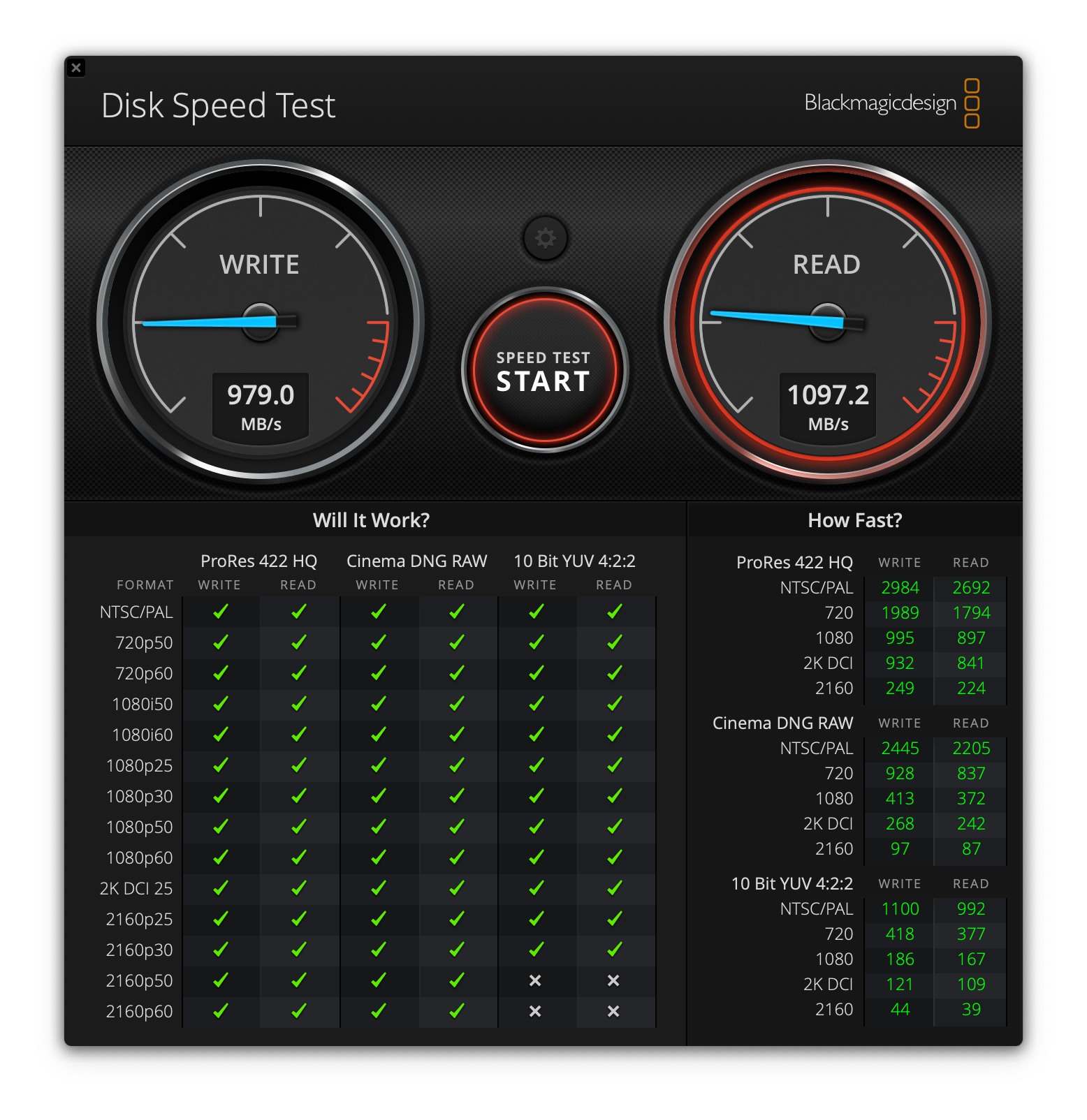 I am attaching my SSD speed test results. I have noticed that initially the r/w stays at ~900 MB/s. It increments to 1100 MB/s after a few iterations, but also drops down the write to 30 MB/s and read to 300 MB/s in some iterations (this happens after 5-8 r/w iterations).