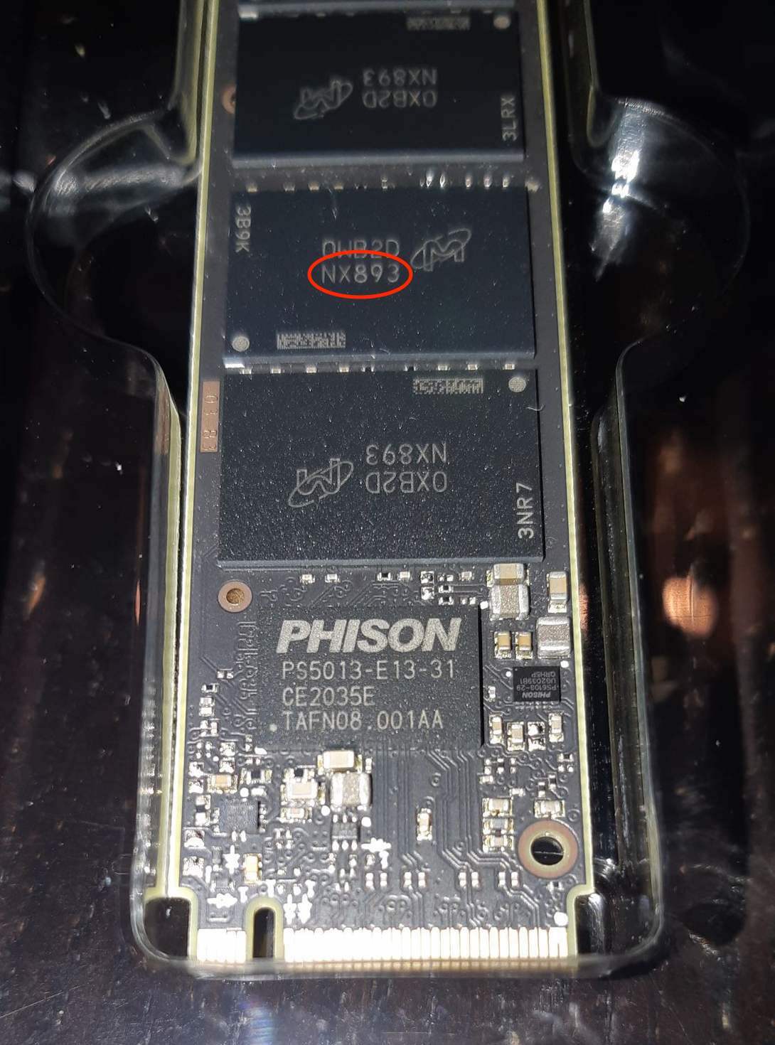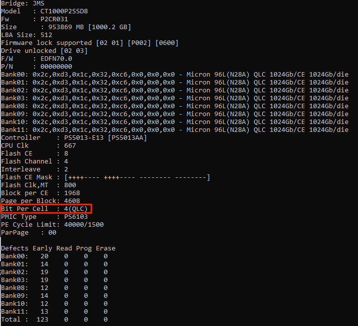 Or 2. You look at your P2 for the second 5 characters (see picture below) and enter them here on this page (FBGA Code). There you will get a part number. Just search for this part number and you will know whether you have installed QLC or TLC.