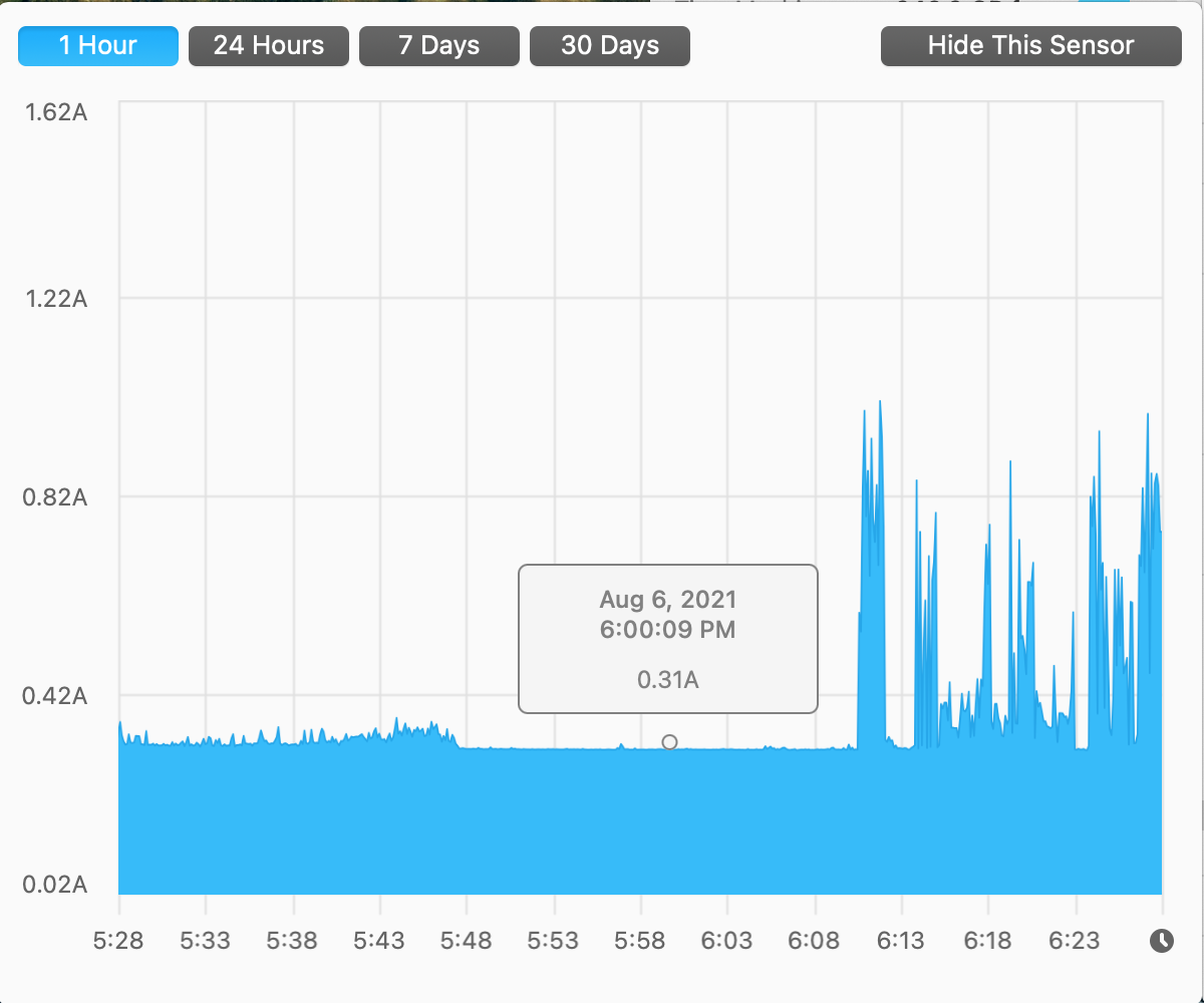 The idle current is around 0.31A, which is twice the current my previous A80 (Silicon Power) 1TB used. I don't care about that because I use the laptop plugged in most of the time.
