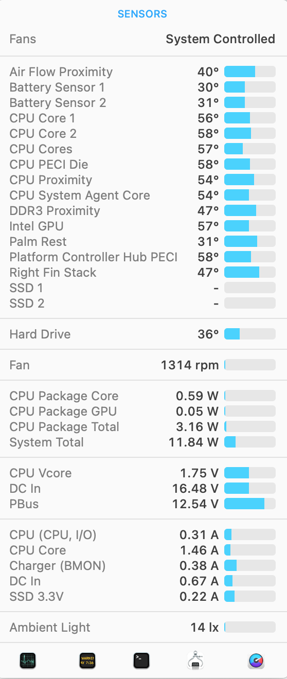 The software used to measure power consumption is iStatMenus (free 14-day trial).![]()