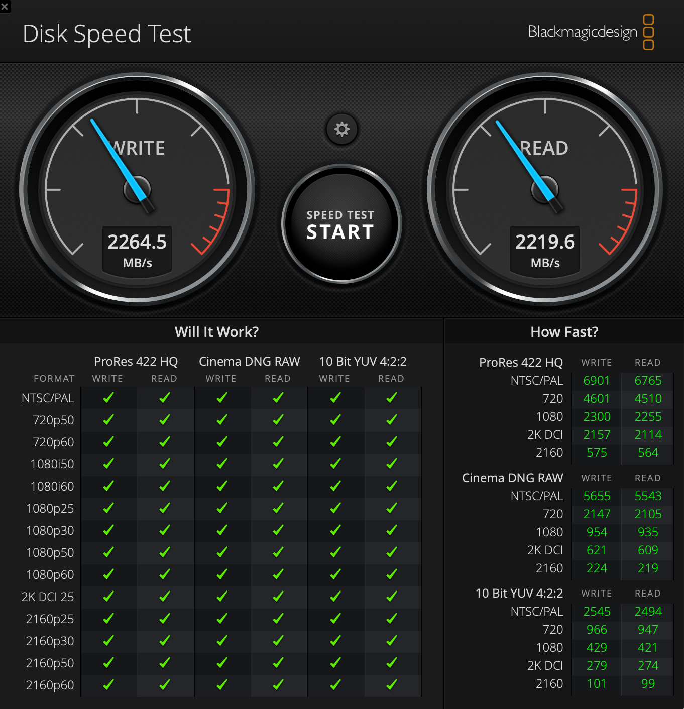 The one thing I don't understand is that your drive doesn't have DRAM. The way that this is compensated for on Windows machines is with HMB - in other words, the drive uses main computer RAM rather than its own on-drive RAM. It was my understanding that Macs don't do this, and I would have thought this would impact the performance of your P2 - but it doesn't appear to be. So, something in my understanding is wrong, because it appears you're getting great results.