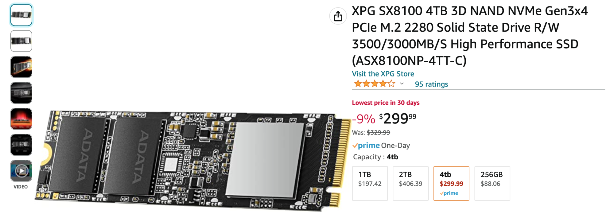 My "problem" with the ADATA XPG SX8100 4TB is it's a bit pricey at $951.04. Yikes.