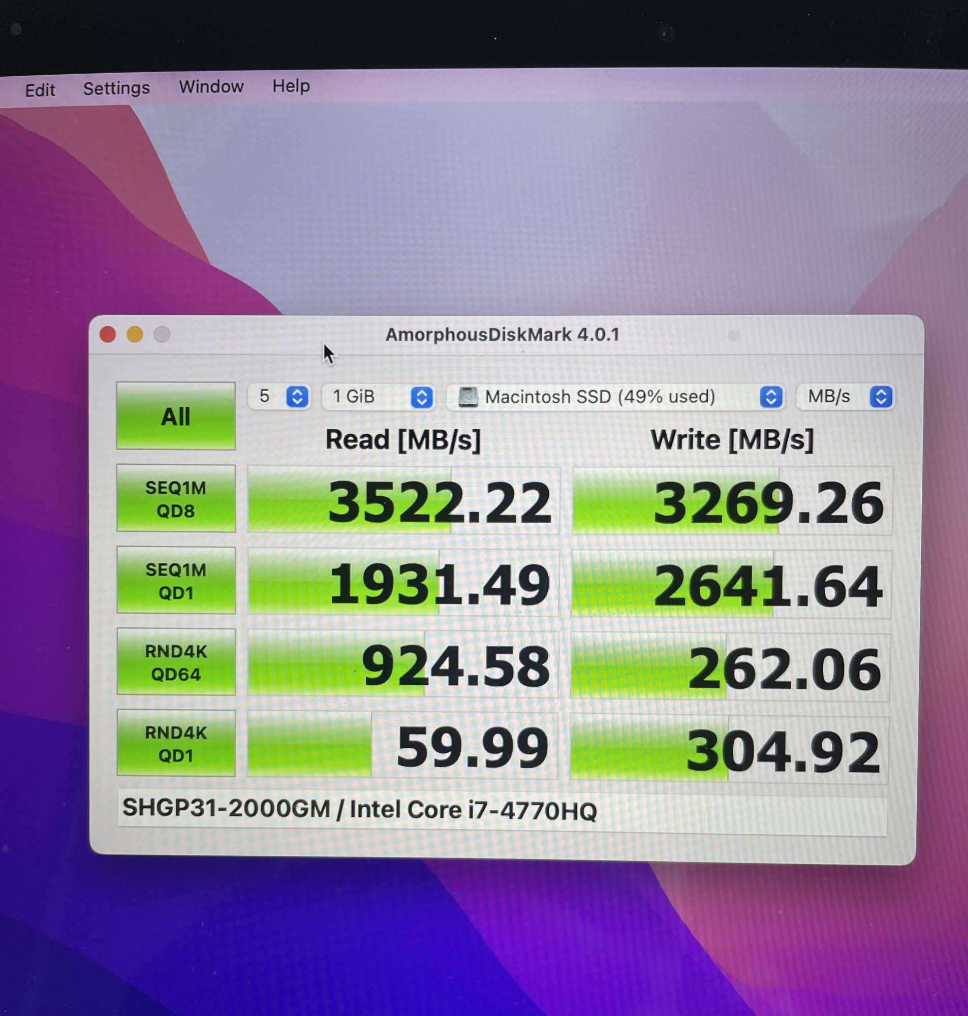 SSD: Apple SSUBX (off eBay with heatsink from Mac Pro 2013 - filed down edges to fit with thermal pads)