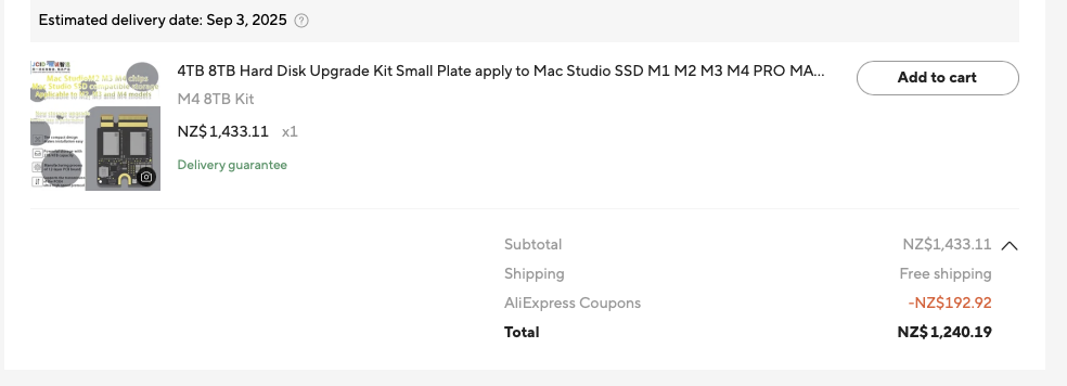 When I compare the price from Polysoft/AliExpress to the price Apple charges for the SSD upgrade, it's wayyyy cheaper for me to buy aftermarket. Apple is ripping us off, especially in New Zealand.Agreed.