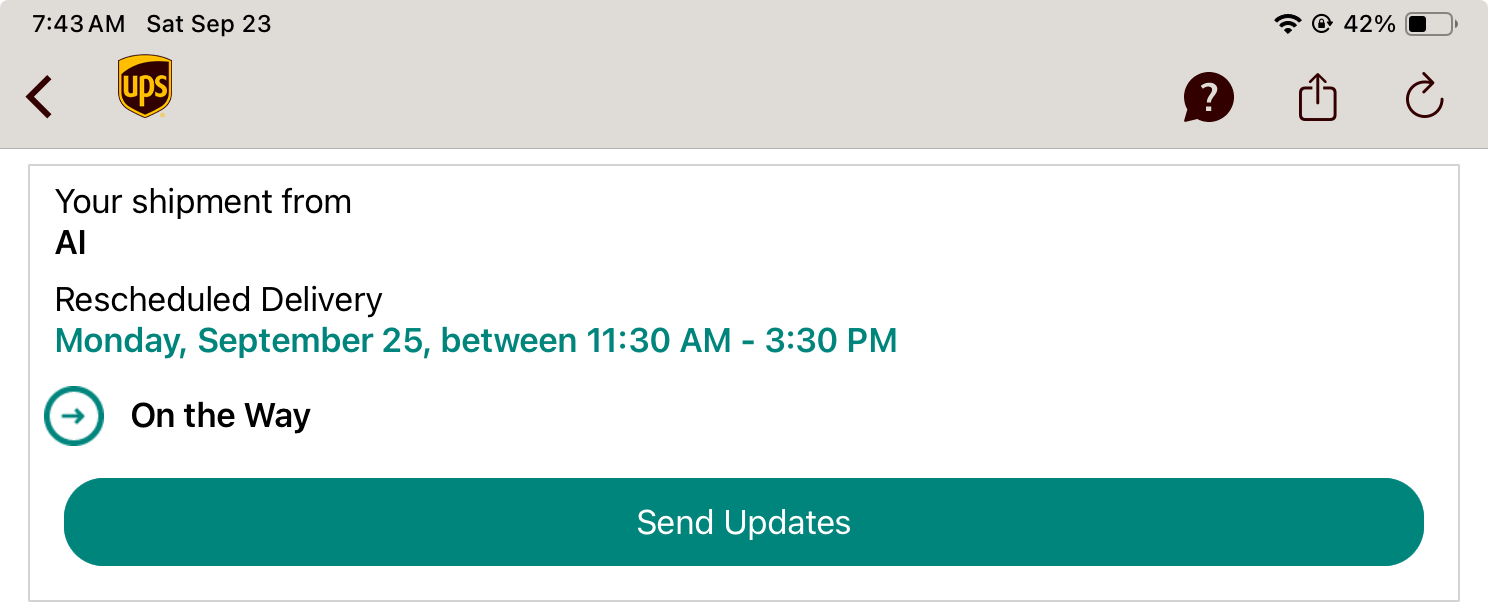 Yesterday, at 8:00p, when I see the UPS truck (you can follow on the app), driving around my neighborhood , but constantly passing in front of my house, I finally flagged him down, and asked if he could give me my packages (two iPhone 15 Pros), and he did.