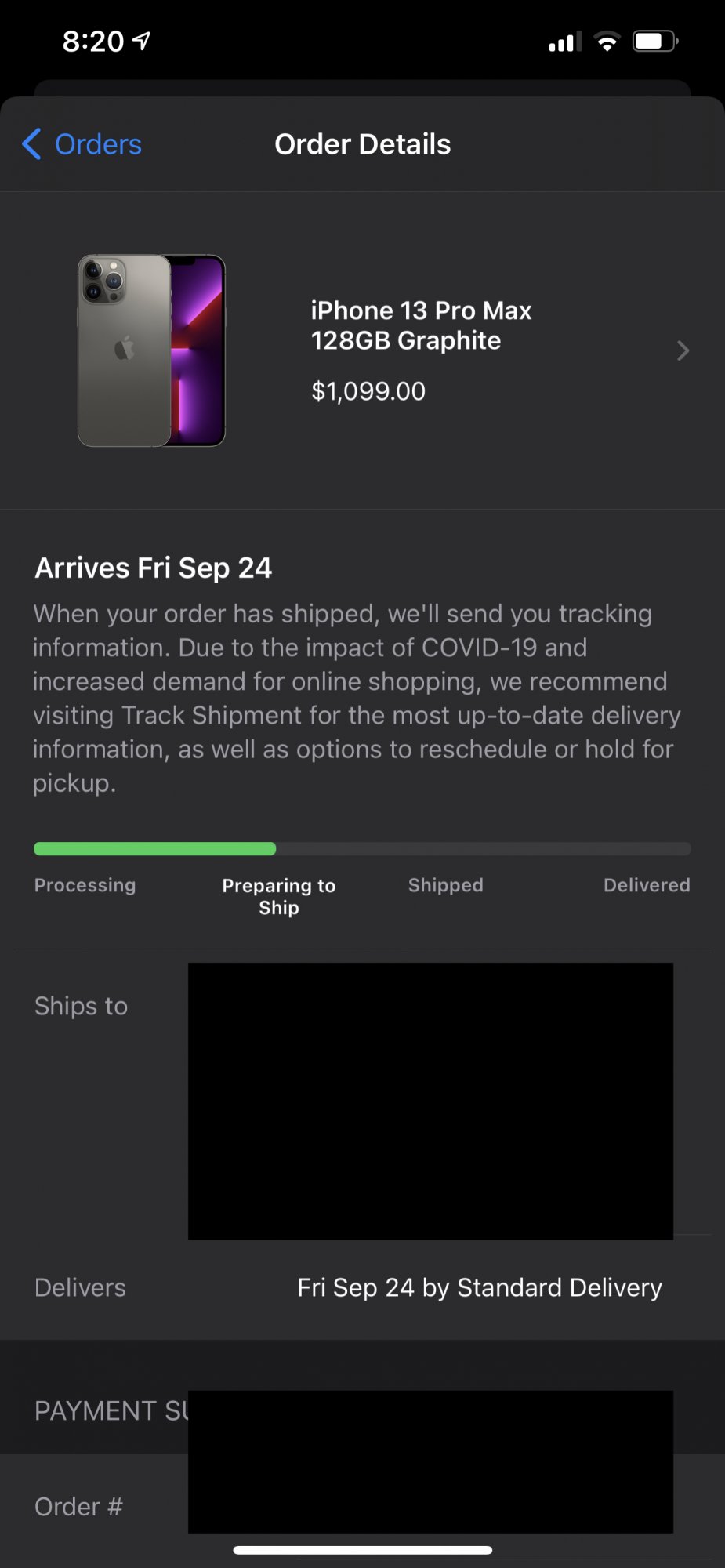 Congrats to all the status changes! I swore I wouldn’t keep checking but all the posts make me curious haha. Mine hasn’t changed yet. I’ll be back later.13PM Gold 256gb also preparing to ship!