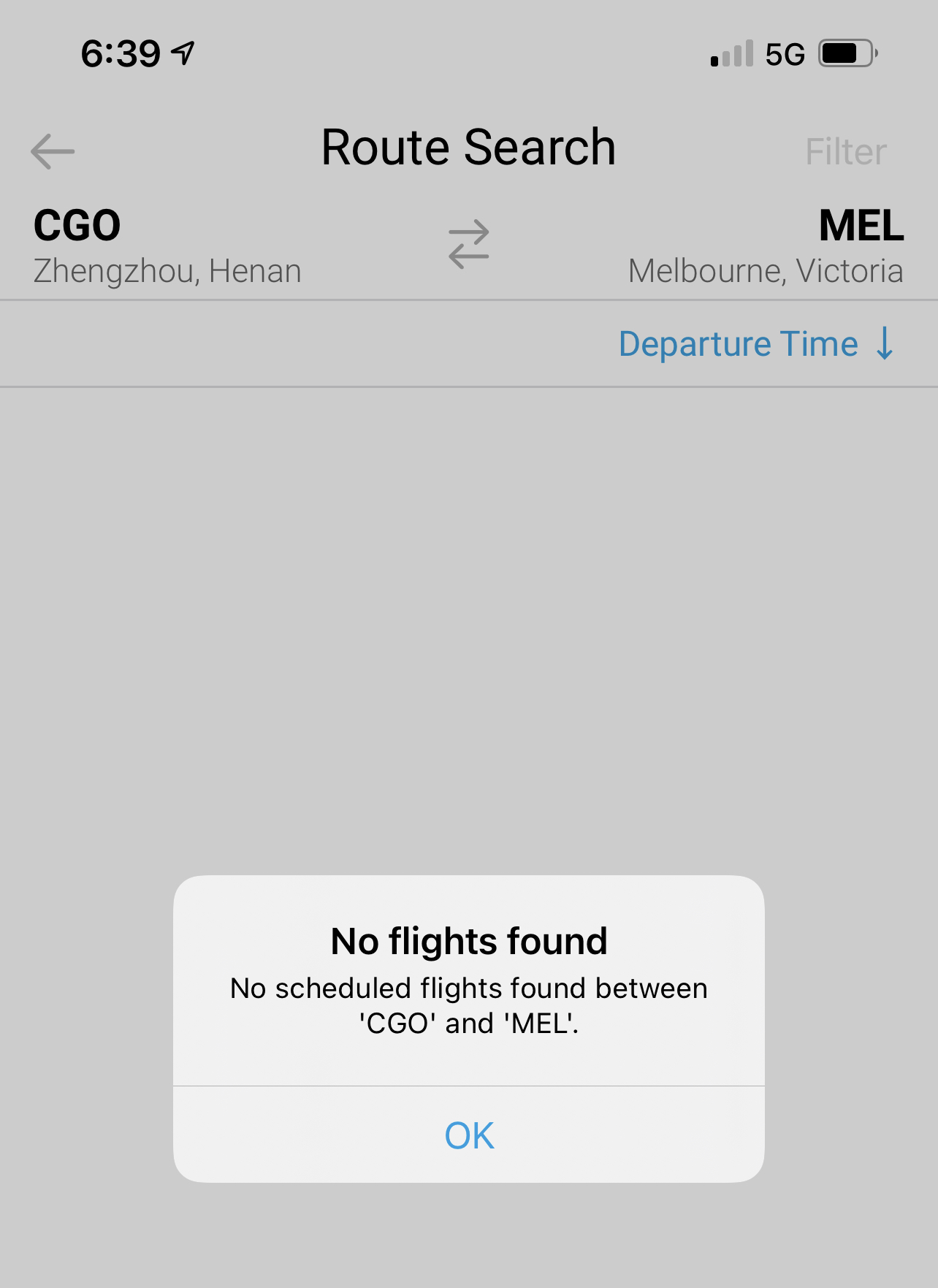 Because you posted that there were no scheduled flights from ZhengZough to Melbourne!Wait, why would he not be ok, lol?