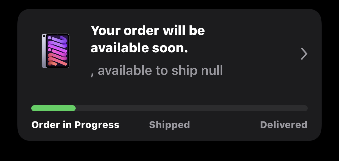 Mine no longer has one as well. All I get is this.My phone is moving but the device I really want in my hands is the new iPad mini which no longer has a delivery date.
