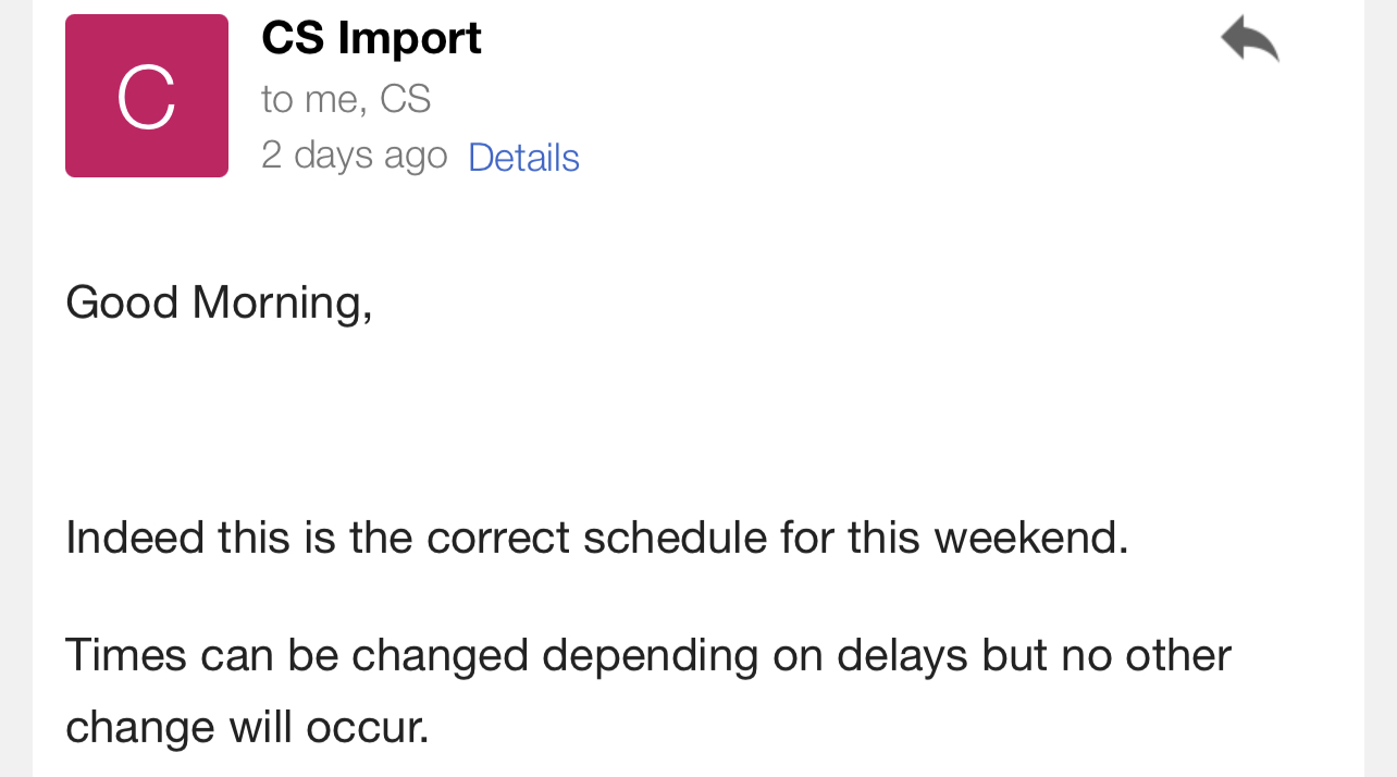 You got it but it seems like it’s going to appear tomorrow now. Tomorrow might be the final day. 4:50 and 6:05 crew will be departing tomorrow.