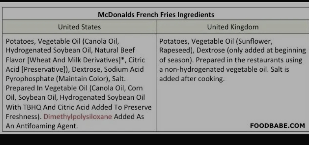 Yeah, but it's still not as juicy though. What about chicken nuggets?Go compare the McDonald's ingredients USA uses v the rest of the world. It's an eye opener.