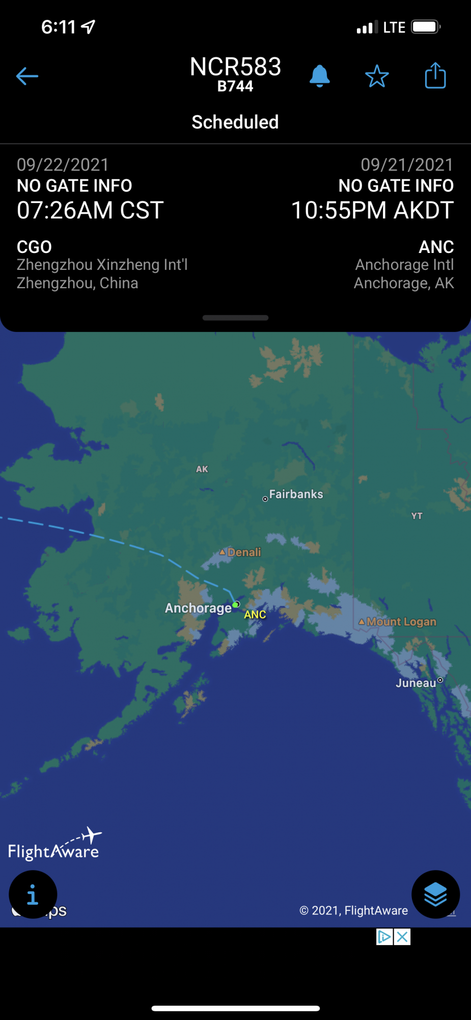 Thank you again. So it sounds like people in the United States are traveling at night? Perhaps, overnight traveling?@TheYayAreaLiving since you're the official flight dispatcher, plan on UPS173 to arrive at ICN around 8PM KST (Korean Standard Time). A quick offload to UPS99 will occur. UPS99 is scheduled at 10:14PM KST and is bound for Anchorage. Now many of you stuck at CGO currently are bored out of your mind and want to see movement. That means you'll have plenty of time to convert KST to your applicable time zone.