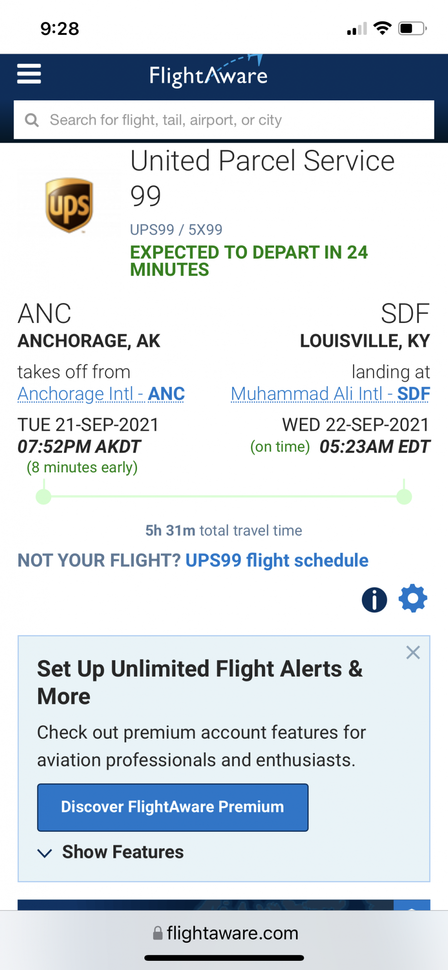 Track United Parcel Service (5X) #99 flight from Anchorage Intl to Muhammad Ali Intlflightaware.com