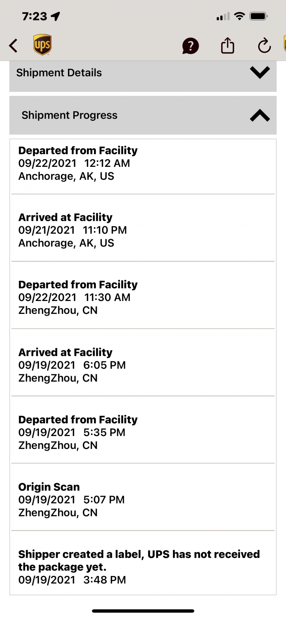 My 9/19 6:05 China left yesterday and has since departed Anchorage at 12:12 AM today. My 9/20 4:00 China phone has had no movement