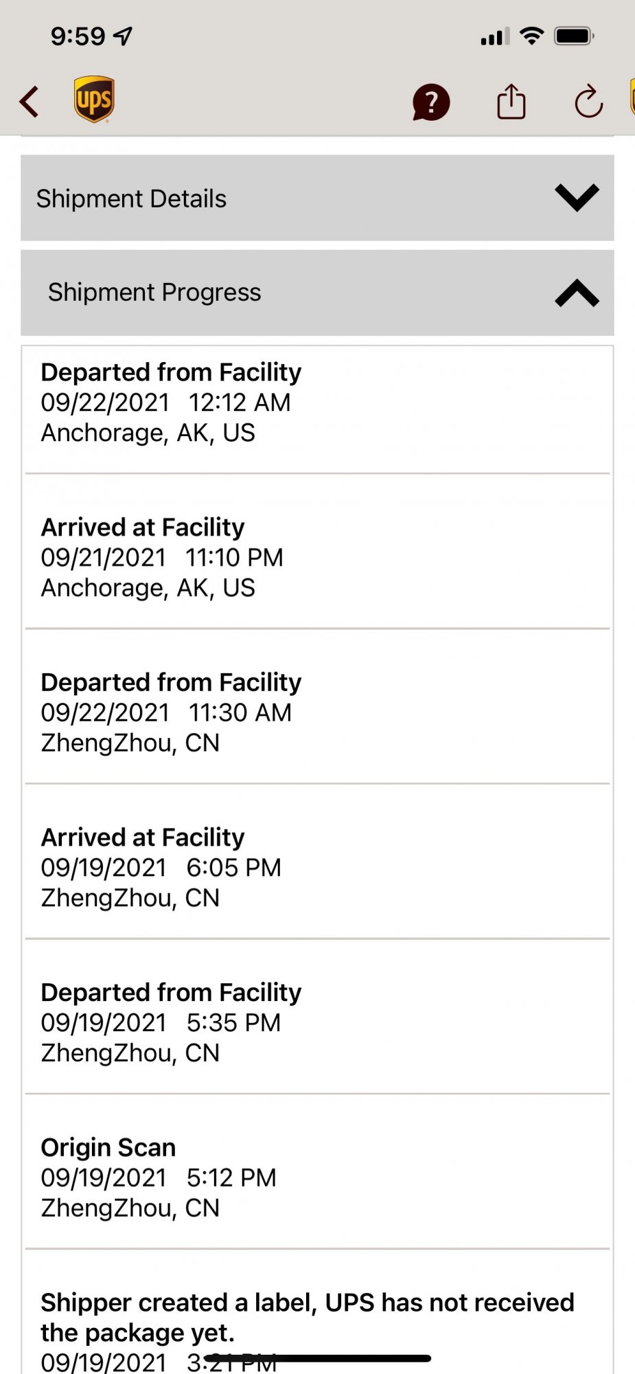 This is exactly where my husband is!!! Y’all taking forever to join us in KYHere is my full tracking from the UPS App. It left AK so it must be in Louisville by now. Has not been scanned there yet.