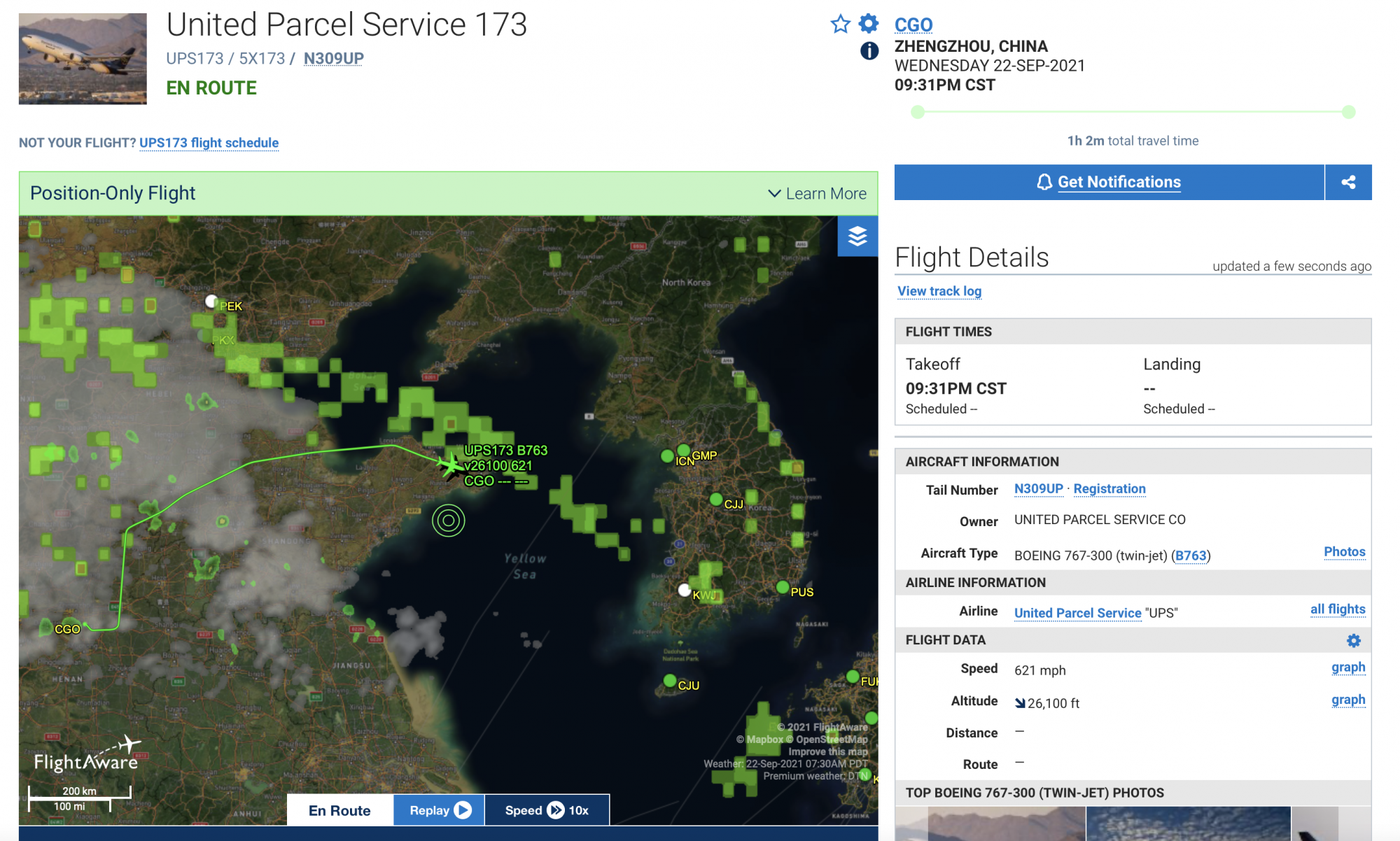 Track United Parcel Service (5X) #173 flight from Dongying, Shandong to Incheon Int'lflightaware.com
