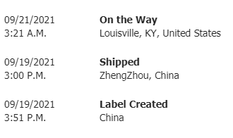Apparently it processed through ZhengZhou, Incheon, and Anchorage all on Monday!!!!