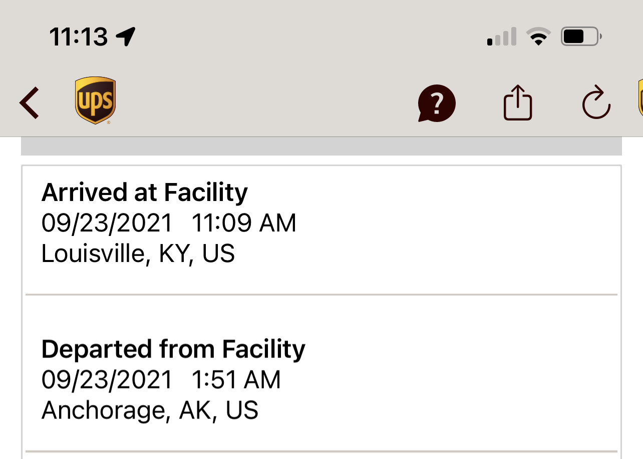 I know this question is for another, but curiously, I have only an import scan at Louisville just before 8:00 AM The prior scan was from Anchorage yesterday.Wait....do you not have even an arrival scan into Louisville?