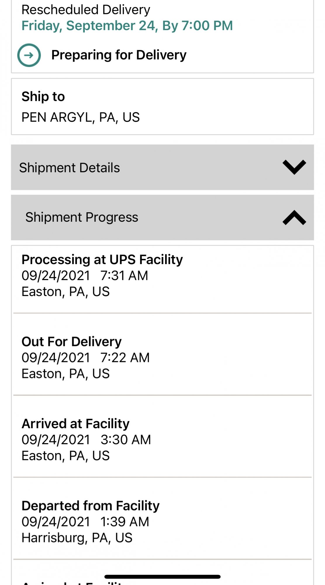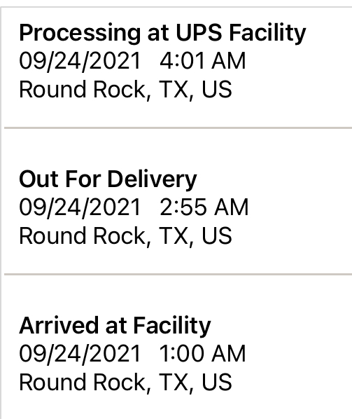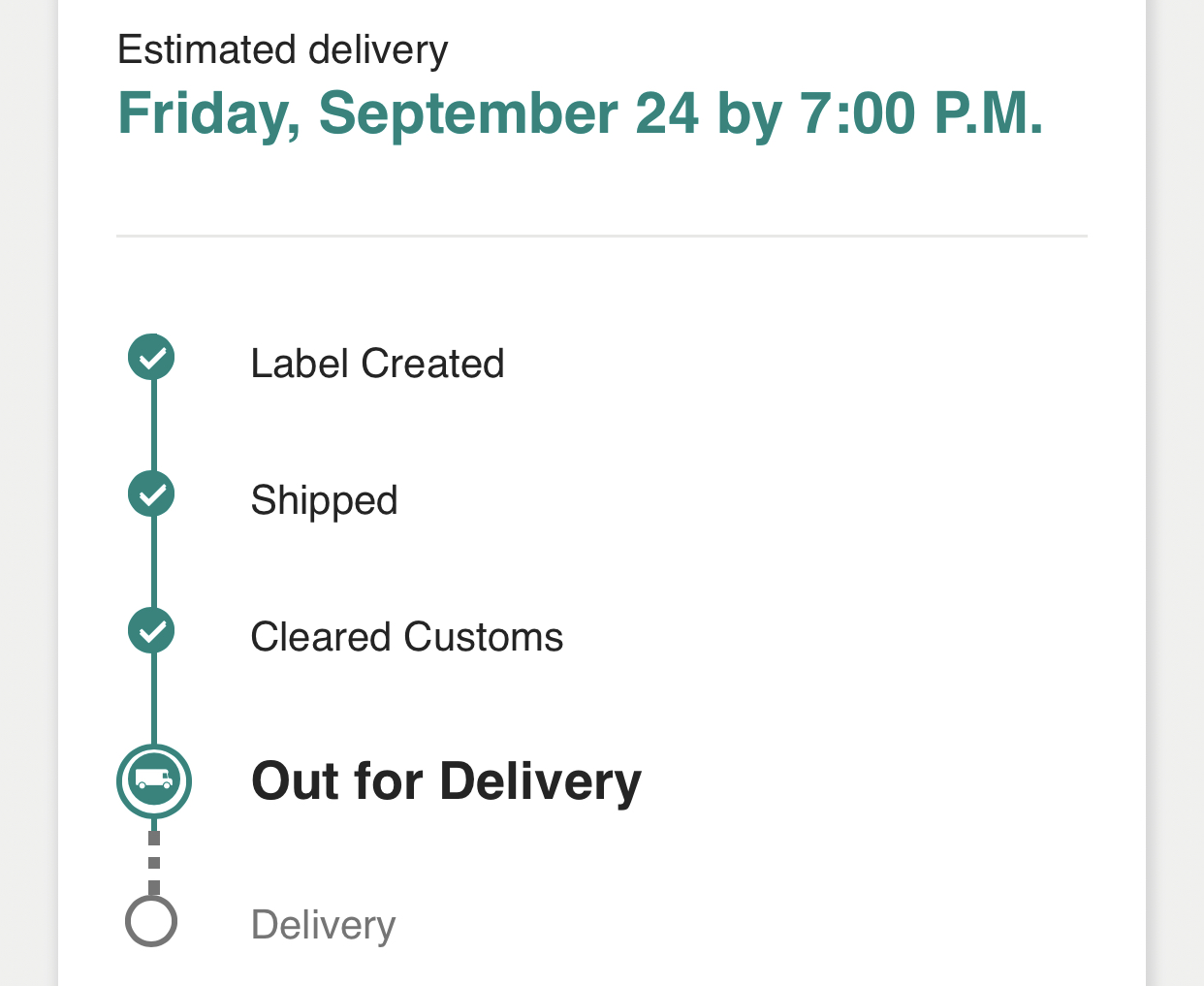 All good!Mine was loaded on delivery vehicle in West Chester, PA at 7:38am. Next will be out for delivery, then to me!