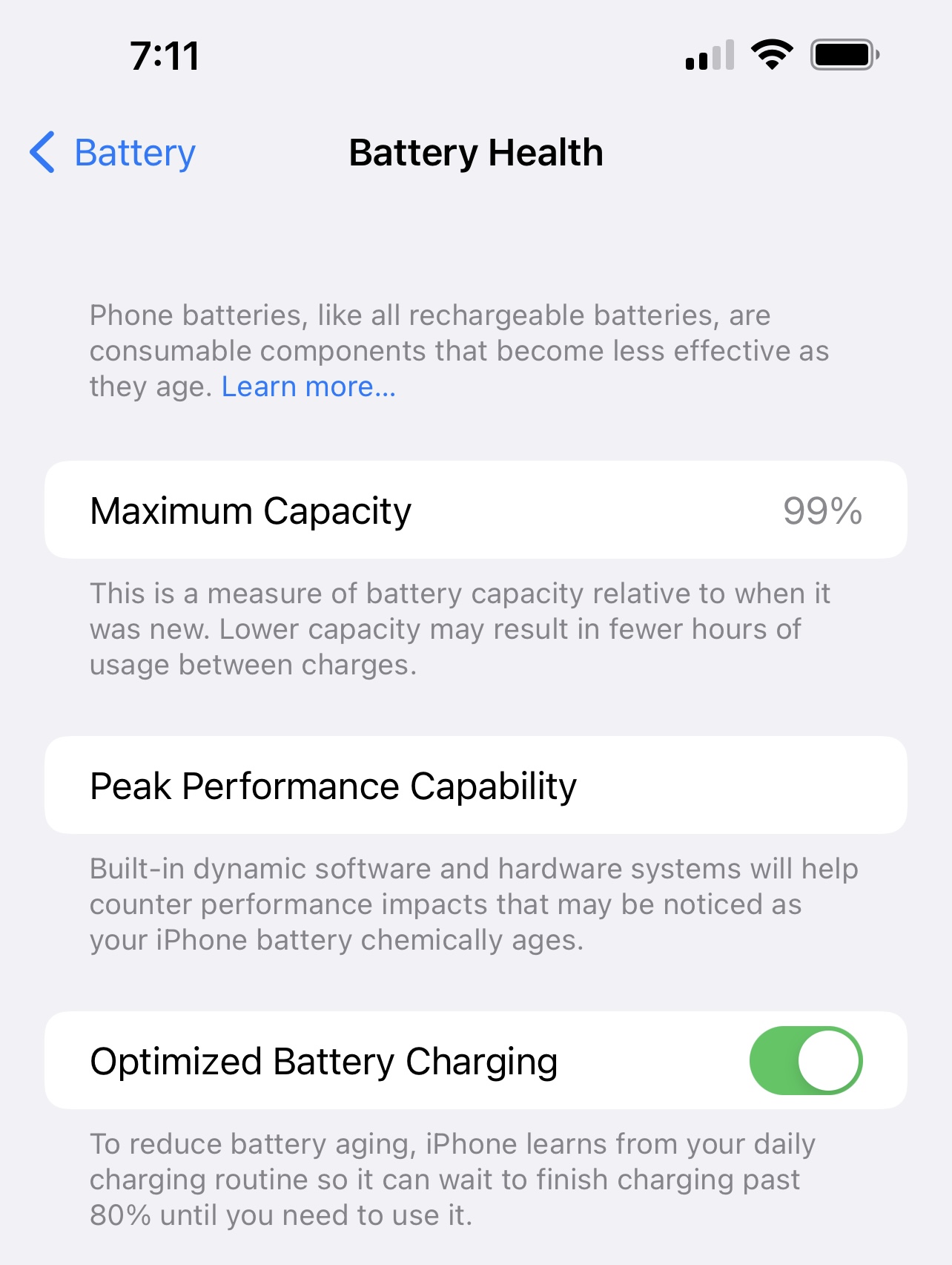 Funny, ever since iPhones supported wireless charging (X) I think I can count on one hand the number of times I've plugged a Lightning cable into my iPhoneOver-night charging every night with Optimize charging kicking in within couple hours. Ever since I've got my iPhone 13 Pro Max. I've only been using the classic 5W charger.