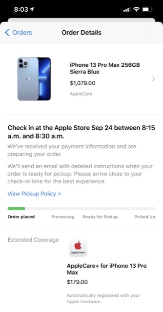 Same. I added AC+ but by time the order was complete it was gone!You should double check. I swore I picked apple care plus theft/loss and knew my monthly payment would be $62, I saw $58 on my screen but didn’t correct it because I wanted to keep my store pickup, I already had tried in the morning and got rejected.