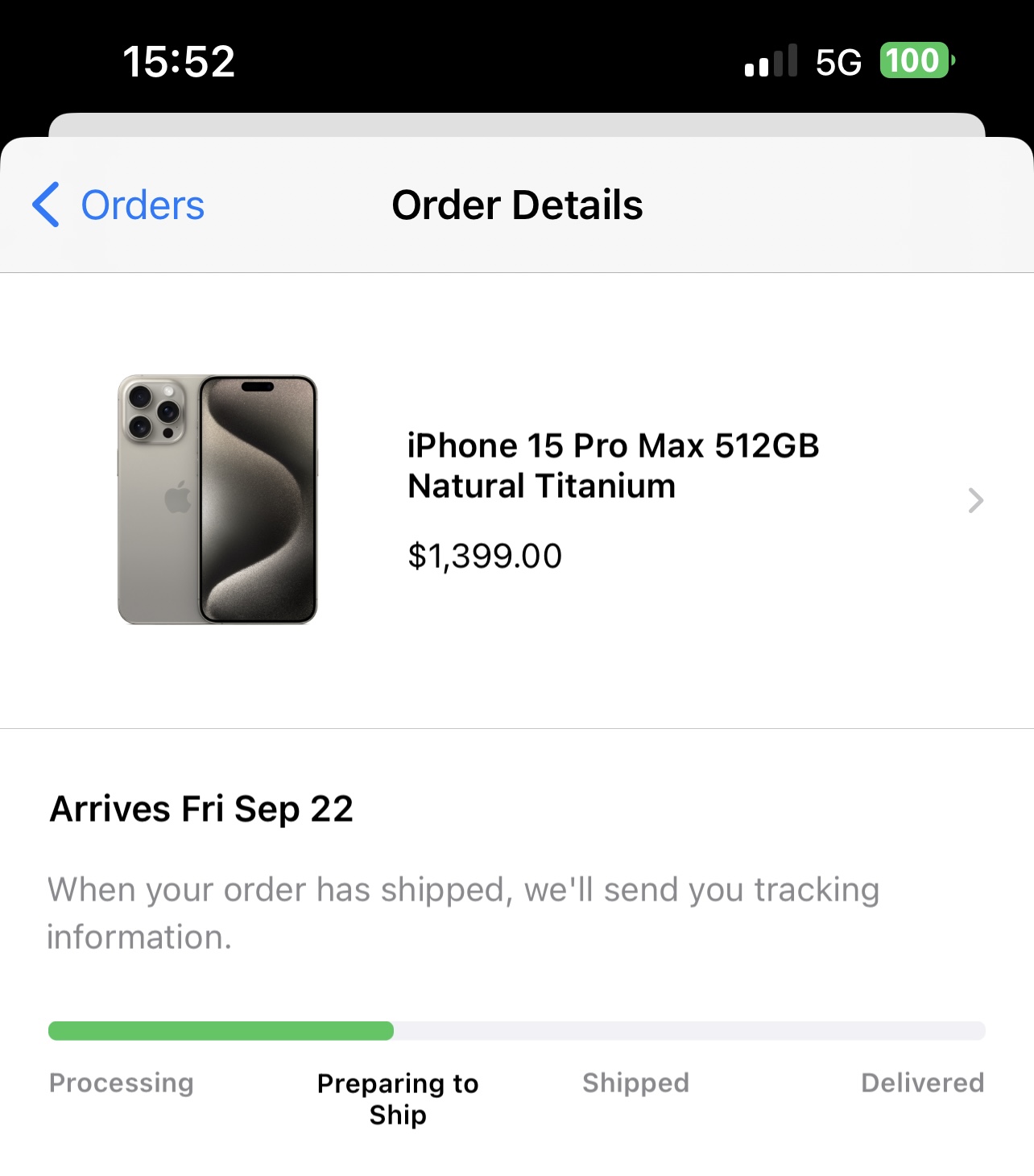A little, I will admit.If it makes you feel better, my status bar only goes from Processing to Ready for Pickup since I’m doing Apple Store pickup. I’m already at processing which means I’m about to just be going a week without updates.![]()