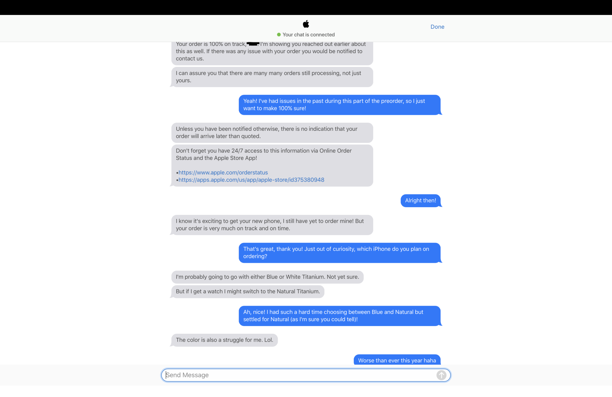 I normally select in-home delivery. At my 28-minute-later-than-normal-ordering panic, I thought it would be nice to have my device earlier in the day on 9/22 (1:30 to be specific) as UPS delivers 7-8 on iPhone Day. So I selected in-store. Only after when I was in this thread was I reminded that in-store trade-ins happen on the spot. I reeeeeally like having both devices for a few days to compare/contrast. Plus, it takes my new devices a few days (once as long as a couple of weeks) before everything gets downloaded and set from my iCloud backup. I’d not like starting that process in-store then walking away with that process only started (where my connection would go from store Wi-Fi to cellular and 100% drop at one point then back to cellular at some point and then eventually home Wi-Fi). Those breaks in connection, in my experience, can lead to weird data funkiness. Additionally, I’m an idiot and I will not be home next Fri. Which, yes I would have 7 days to pickup my in-store, which is nice. But it’s all about swapping phones on the spot that I don’t like. That’s the deal. 😉