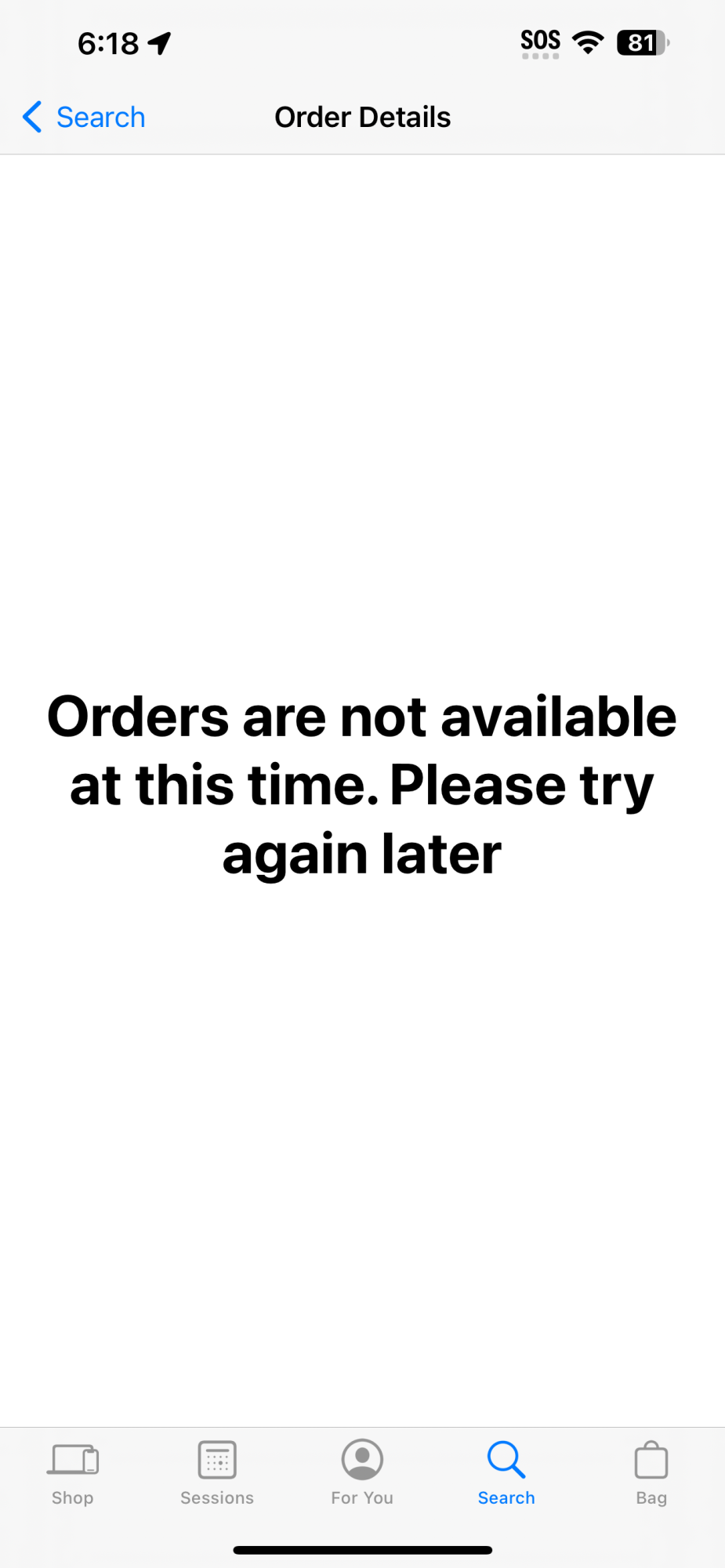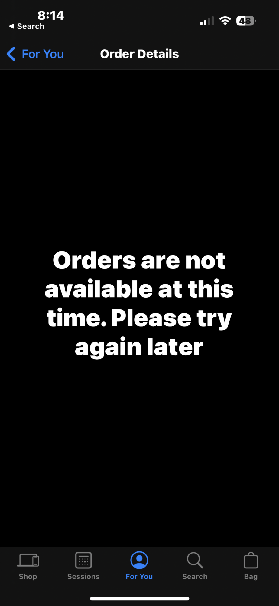 Is this page indicative of anything specific to the order, or just an issue with the app?