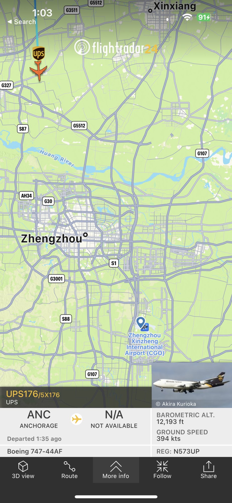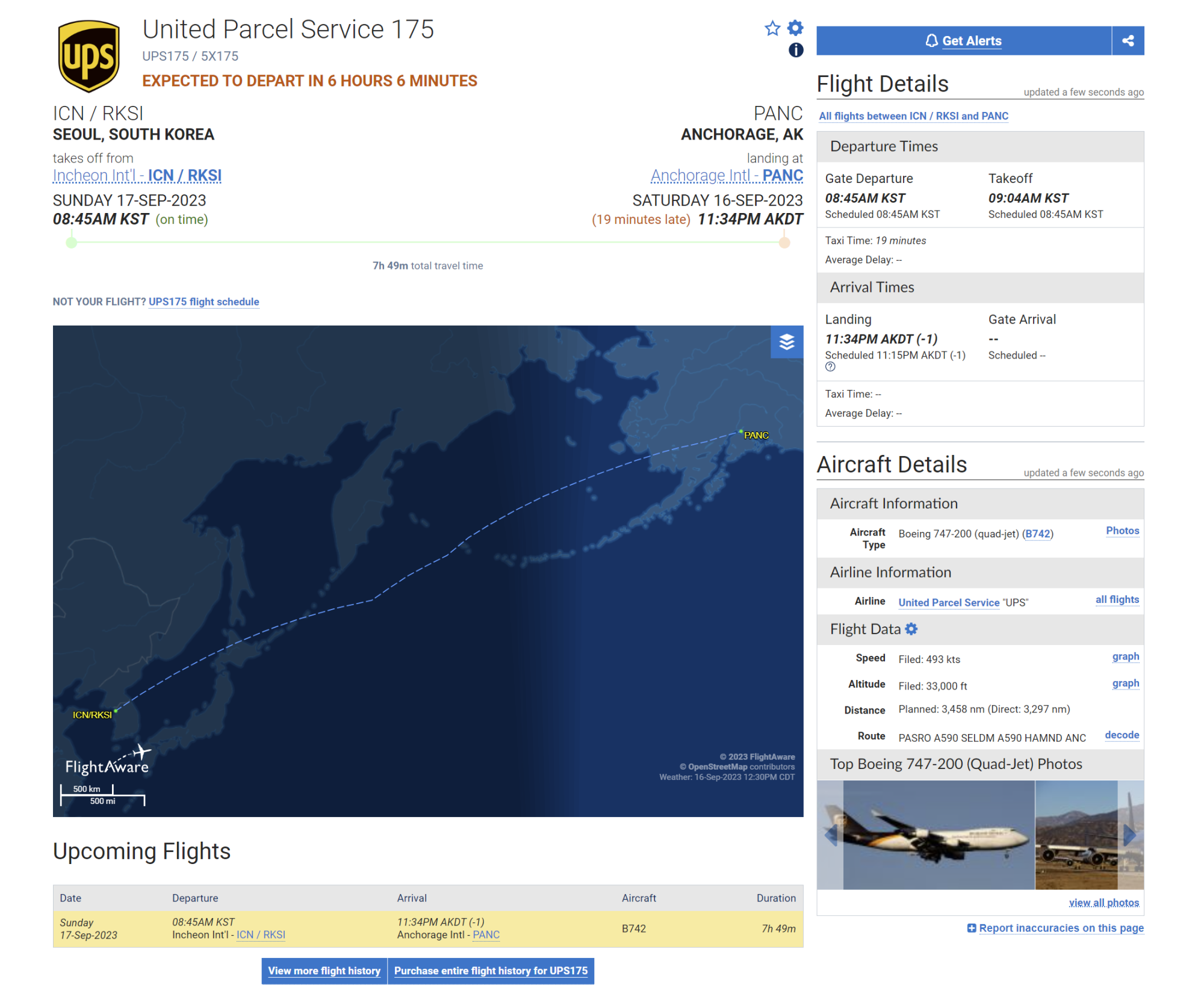 I'd also expect UPS175 to be the flight number for our flight out of China. Be on the lookout for that popping up on FlightRadar24. More than likely in the next 2-3 hours.