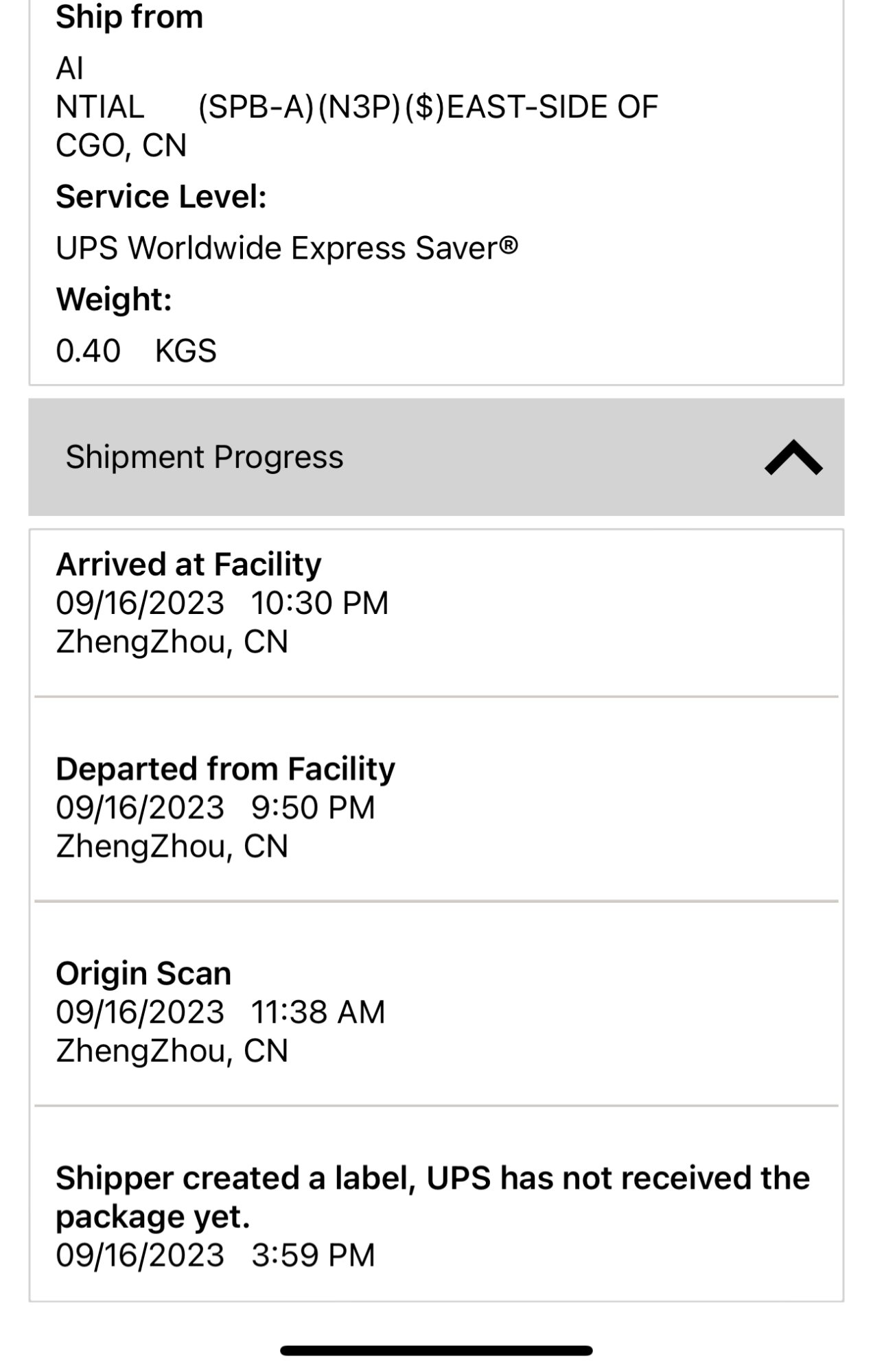 UPS My Choice app shows my tracking number
