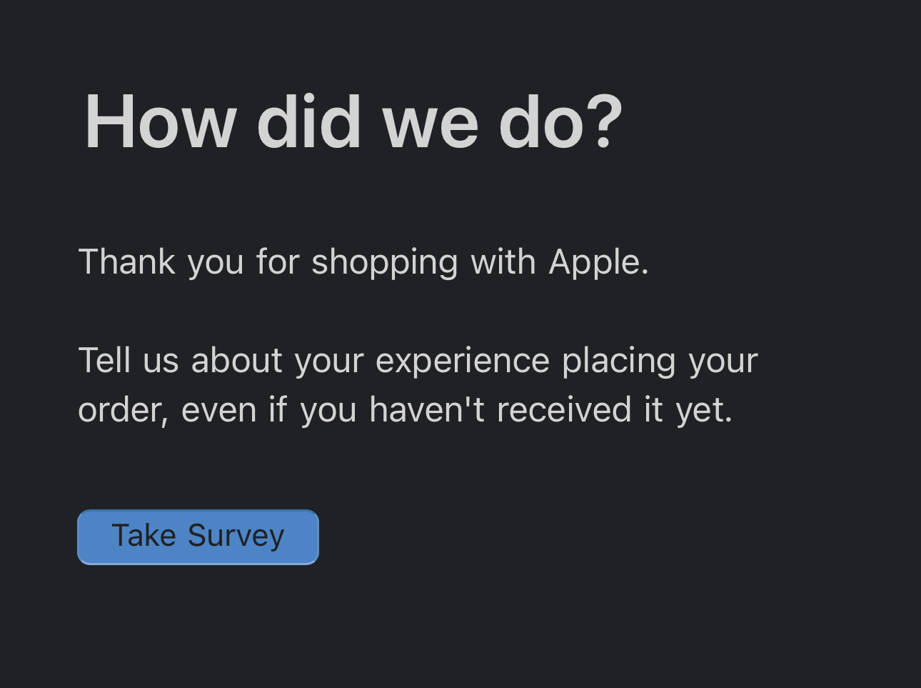 I got this as well. Demand is always high for a flagship iPhone launch but this wasn’t even a super cycle upgrade like the X.I just got this survey regarding the preorder process. Those of us who experienced technical issues during checkout should definitely participate.