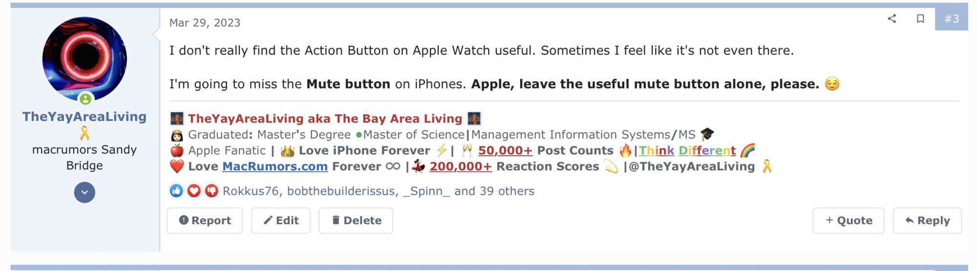 Also see my post below. Dated in March, 2023 & July, 2023. Time will tell how useful it's going to be.Tbh with you I’m not a fan of Action Button. It just feels too gimmicky. I prefer the classic mute switch. I have a feeling I'm going to miss it.