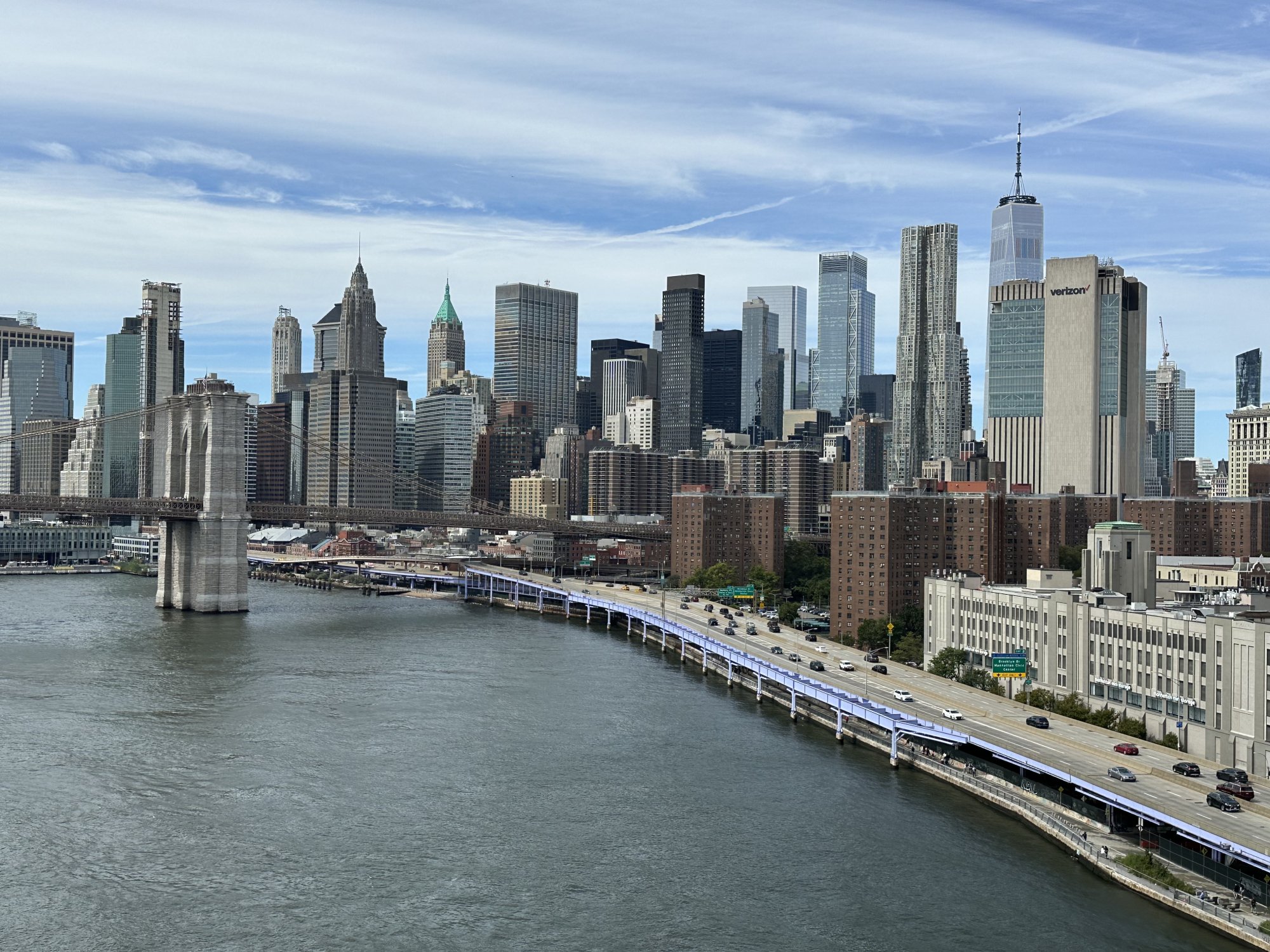 That's the Brooklyn Bridge and you can see One World Trade Center too! 😎